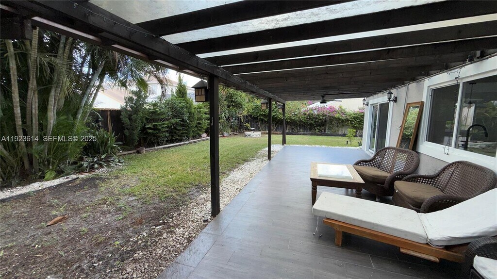 Beautifully updated single-family home offering 3 bedrooms, 2.5 baths, plus a large dedicated office that can easily be converted into a 4th bedroom. This home features brand-new impact windows and doors throughout, a 2-car garage, and an extended driveway for additional parking. Enjoy exceptional outdoor living with an oversized balcony connected to a newly built outdoor kitchen complete with a workstation sink, coal barbecue with rotisserie system, and bar seating. The expansive west-facing, fully fenced backyard offers total privacy and includes mature trees, multiple fruit trees surrounding the property, a fire-pit area, charming pergola, waterfall fountain, and an additional covered space ideal for lounging or entertaining. Located in the desirable Boca Landings community, residents benefit access to top-tier amenities including a community pool, playground, racquetball, pickleball, and tennis courts.