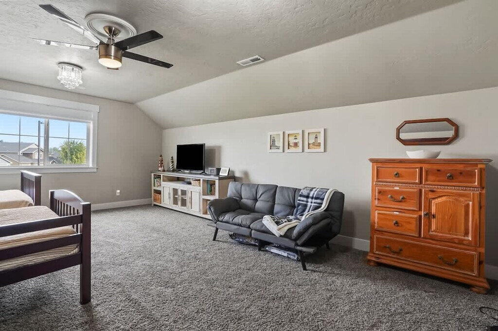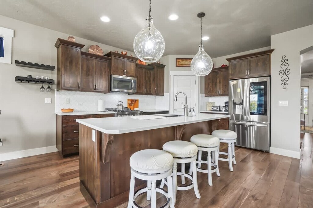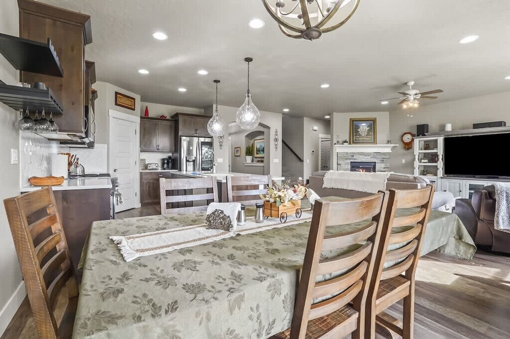 Feel at home in Parkside Retreat, a cozy and well-appointed 3-bedroom home with a bonus room located in the heart of Nampa. This getaway comfortably accommodates up to 12 guests. Enjoy the fully stocked kitchen, perfect for cooking meals. The private, fenced backyard also features a BBQ grill. Take a short stroll to the nearby park and pool, adding extra fun to your stay. Smoking inside the home will result in a $250 cleaning fee. If pets are found during your reservation, it will result in a $250 additional fee. Parties, events, and unauthorized gatherings are strictly prohibited and violation may result in immediate termination of the reservation without a refund and an additional cleaning or disturbance fee. Quiet hours are from 10:00 PM to 8:00 AM. Late check-outs beyond 30 minutes without prior approval will incur a $300 fee. [SI]