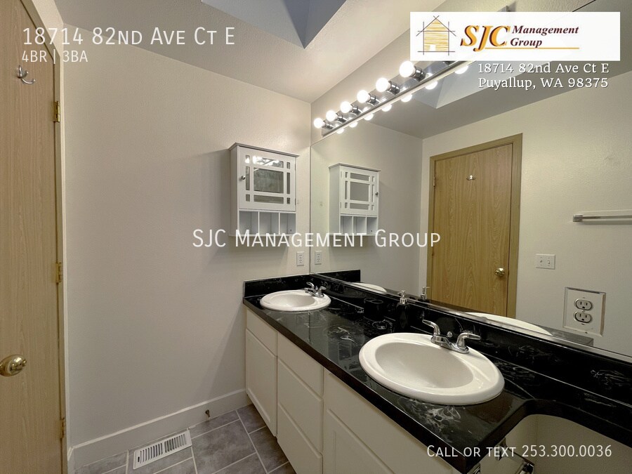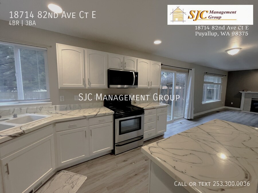Lovely 4 bedroom, 2.5 bath South Hill home. Close to schools, shopping and easy access to JBLM, yet tucked away in a quiet neighborhood. A cute covered front porch greets you as you enter the open-concept layout of the home where each room transitions seamlessly into the next, offering flexibility to arrange your living, dining, and family spaces to suit your lifestyle. The bright kitchen boasts white cabinetry with ample counter and storage space, and everything you need for meal preparation. The family room is warm and inviting with a cozy gas fireplace. A convenient half bath is tucked neatly under the stairs. The staircase also discreetly conceals access to the 2 car garage and a laundry room equipped with a washer and dryer. Step outside to a spacious deck with built-in bench seating—perfect for entertaining or relaxing outdoors with the privacy of a fully fenced backyard. Try out your green thumb with the various raised beds and garden areas. Lawn maintenance is paid for by the owner. The hallway upstairs peeks down to the front door, and leads you to 4 nicely sized bedrooms. Custom paint colors and creative closet solutions make the spaces warm and inviting. The primary bedroom has a vaulted ceiling, a walk-in closet, and en suite bathroom with double vanities that complement the dark blue of the bedroom. Another bathroom with a bathtub/shower and large vanity space finishes out the upstairs. Schedule a showing or take our virtual tour today! Pets [breed and size restrictions may apply] are allowed, pet screening required. Approved pets will incur a pet mitigation fee (between $150 and $350) at move-in + a monthly pet fee of $35-$75, max two pets. For more information or to set up a viewing please contact the leasing team at SJC Management Group today! Please note showings can be scheduled online at any time. After hours or weekends, showings must be scheduled and confirmed by our staff before the end of the business day. Our business hours are Monday-Friday from 9 am to 5 pm. We are closed for all major holidays. ADDITIONAL TERMS: Required $85 at move in and additional $35 per month Resident Benefit Package offers an array of advantages. With this package, you'll enjoy convenient benefits such as regular delivery of furnace filters and additional perks designed to enhance your renting experience. UTILITIES: Not Included DEPOSIT REQUIRED: $2745