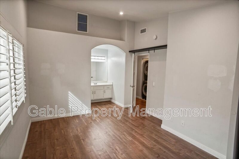 Beautifully upgraded dual master bedrooms and 2.5 baths located in the highly desirable gated community of Vista Del Canon! This stunning 2-bedroom, 2.5-bath home features a spacious living room with a cozy fireplace, recessed lighting, wood shutters, wood vinyl flooring throughout (no carpet), and custom paint. The updated kitchen offers white cabinetry, upgraded countertops, a stone backsplash, recessed lighting, and stainless steel appliances including a microwave, stove, dishwasher, and refrigerator. The adjacent dining area provides a perfect space for entertaining. A stylishly upgraded downstairs powder room completes the main level. Upstairs, you’ll find two generously sized dual master suites, each with its own attached bathroom. The primary suite features high ceilings, mirrored wardrobes, and an upgraded en-suite bath with a vanity, walk-in shower, and updated tile flooring. The second master suite also boasts high ceilings, mirrored wardrobes, recessed lighting, and a private bath with a vanity, upgraded flooring, shower/tub combo, and updated light fixture. Additional highlights include an upstairs hallway laundry area with a full-size washer and dryer and built-in shelving, a sliding glass door leading to a private patio, and a 2-car attached garage. The gated Vista Del Canon community offers amenities including a pool and spa. Conveniently located near the freeway, Costco, parks, a new shopping center, and restaurants.