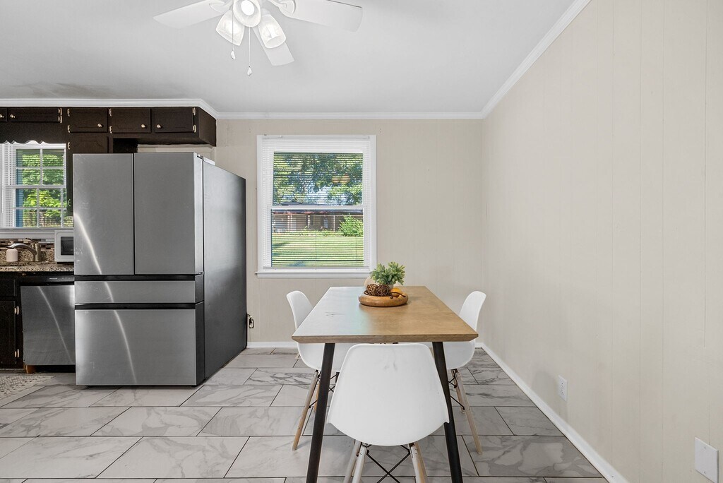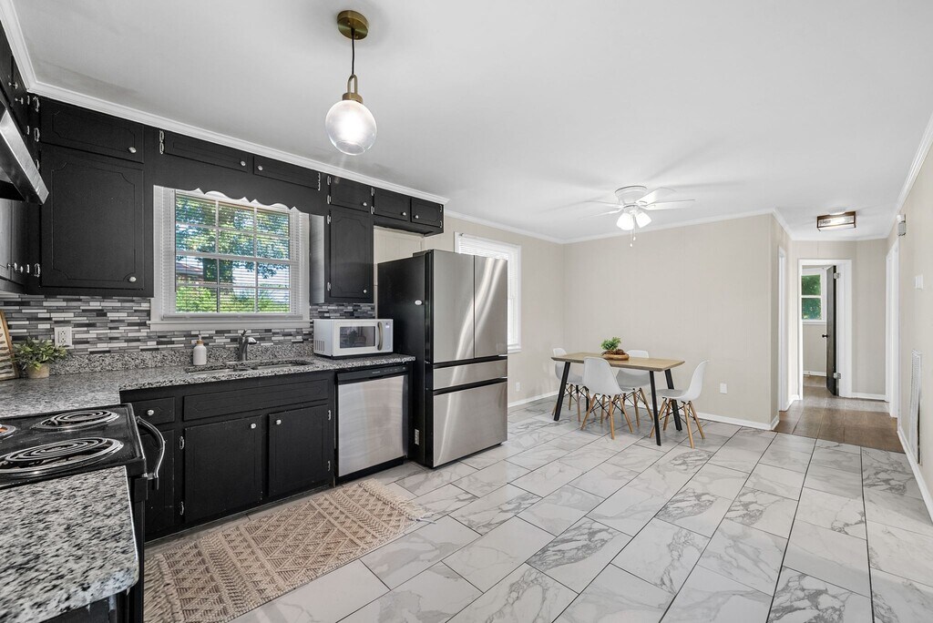 Gorgeous all-brick ranch-style home situated on a spacious lot of over half an acre in a fantastic location! This three-bedroom, two-bath home offers plenty of living space, featuring a large den with a cozy fireplace, a bright living room filled with natural light, and a generous kitchen with ample cabinetry and a lovely dining area.The massive fenced-in backyard is perfect for relaxing, entertaining, or even raising chickens, with no restrictions! Pet-friendly: one pet up to 35 lbs permitted. Pet fee and pet rent apply.