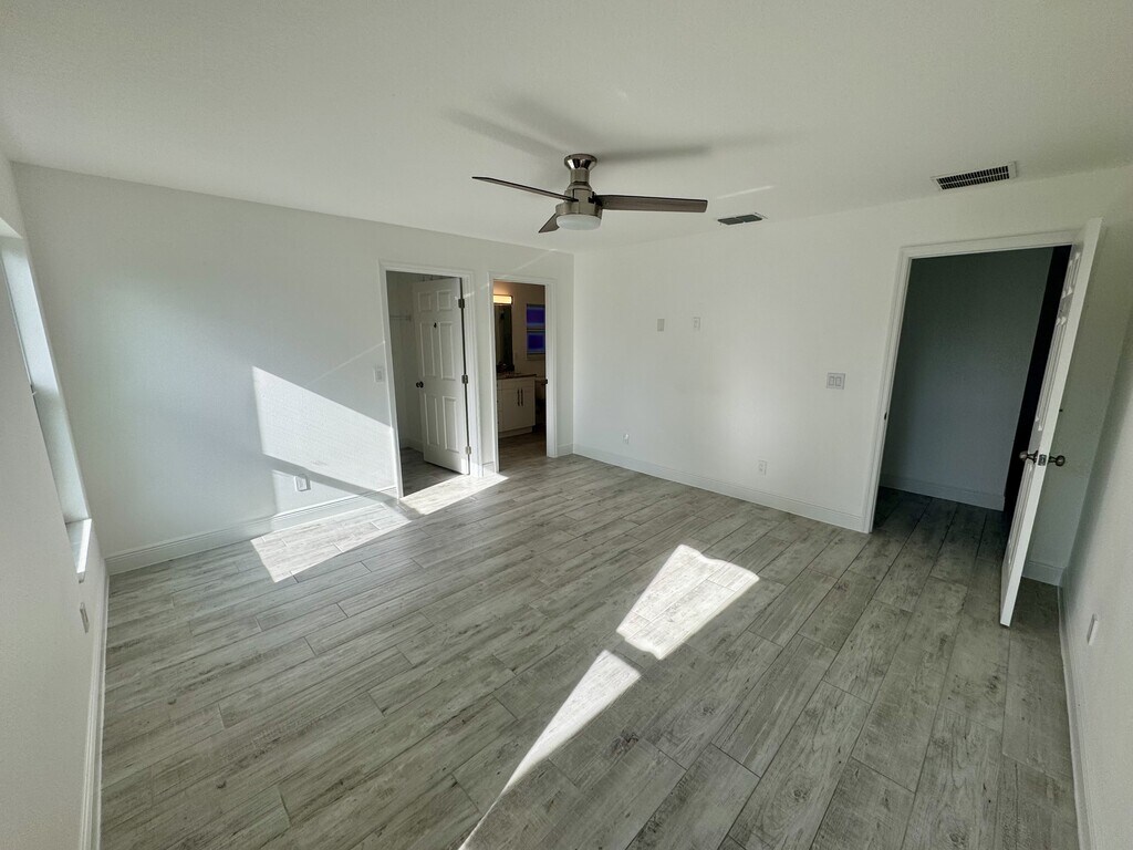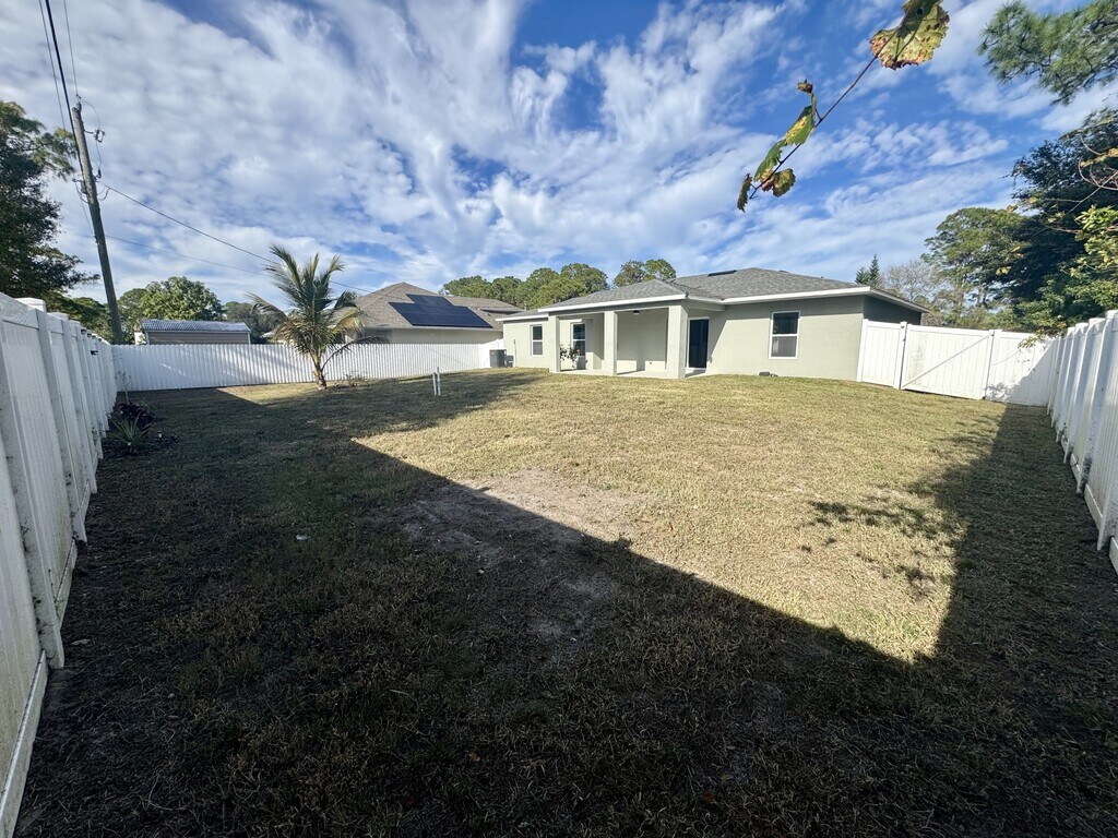 Start the new year off in this beautifully maintained 3/2 on a quiet street in Palm Bay. Enjoy NO ELECTRICITY BILL because of the solar panels, NO WATER OR TRASH BILL and PEST CONTROL included! Large walk-in closet, dual primary bathroom sinks, beautiful tile work, and a fenced-in backyard are just some of the must-see features. More pictures coming soon. Ready for move-in January 2026.