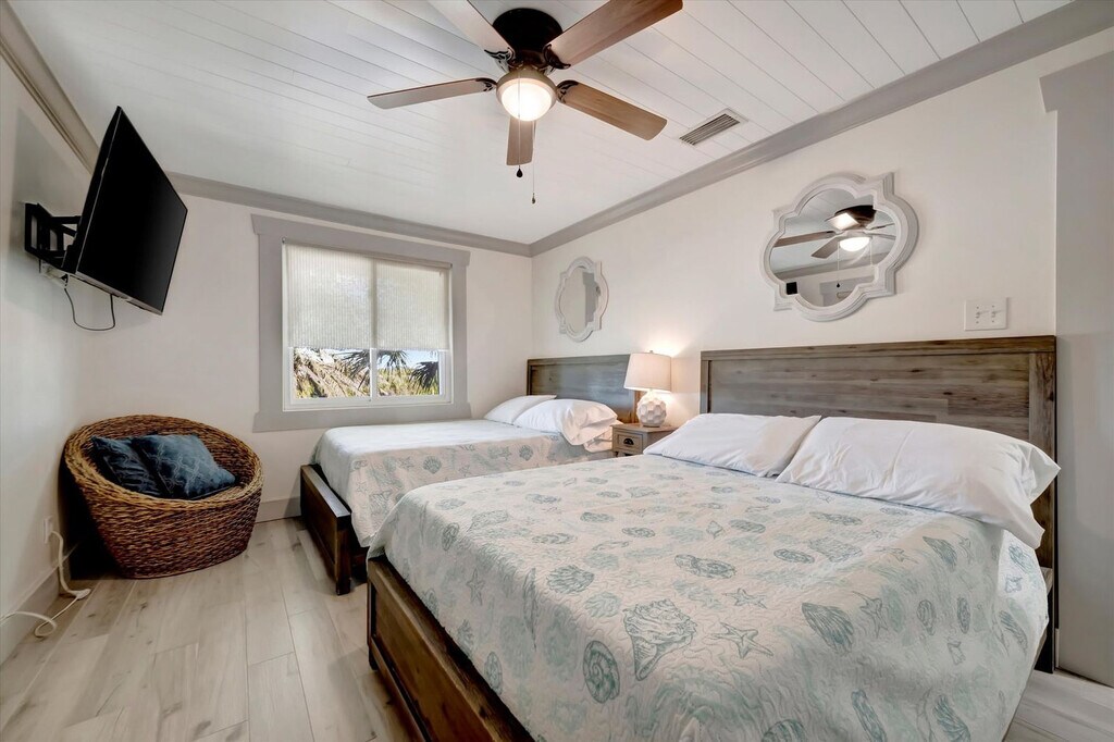 Feel at home in this beachfront Gulf-view condo in Indian Shores, a bright and comfortable retreat on the second floor (stairs required to enter). This single-story unit is perfect for families, friends, or groups, with 2 bedrooms and 2 bathrooms. This condo features an open-concept living room with comfortable seating and smart TVs with cable, a fully equipped kitchen with a refrigerator, stove/oven, dishwasher, microwave, Keurig and drip coffee makers, blender, dishware, flatware, pots/pans, and knife set. Enjoy central A/C and heating, ceiling fans in all rooms, a washer and dryer with laundry detergent, complimentary toiletries, beach chairs and towels, a disinfectant UV HVAC filter, and an air purifier. Enjoy the convenience of 2 covered parking spaces. Every reservation includes a damage waiver program covering up to $500 in accidental damage during your stay. Located in a quiet beachfront community in Indian Shores, this condo offers easy access to the public beach, local restaurants, cafes, and shops. Clearwater Beach, Redington Beach, and Sand Key Park are a short drive away. Getting around is easy, with the PTSA Beach Trolley stopping nearby, offering convenient access to explore Gulf Boulevard from Clearwater to St. Pete Beach. A digital rental agreement must be signed and completed prior to arrival, including providing a photocopy of a legal ID and a verification selfie. Quiet time is between 10 pm and 8 am daily. Unauthorized pets will incur a penalty of $400 per pet and possible cancellation of the remainder of the reservation without a refund. If cleaners determine smoking has taken place, whether by observation or smell, a $250 penalty will be charged. Unless requested and approved in advance in writing, lethal weapons are not allowed on the property, and a violation of this rule will result in immediate removal from the property along with no refund and a penalty of $250. If a guest leaves personal items behind and requests their return, they are responsible for a $35 service fee plus packaging and shipping costs. [SI]