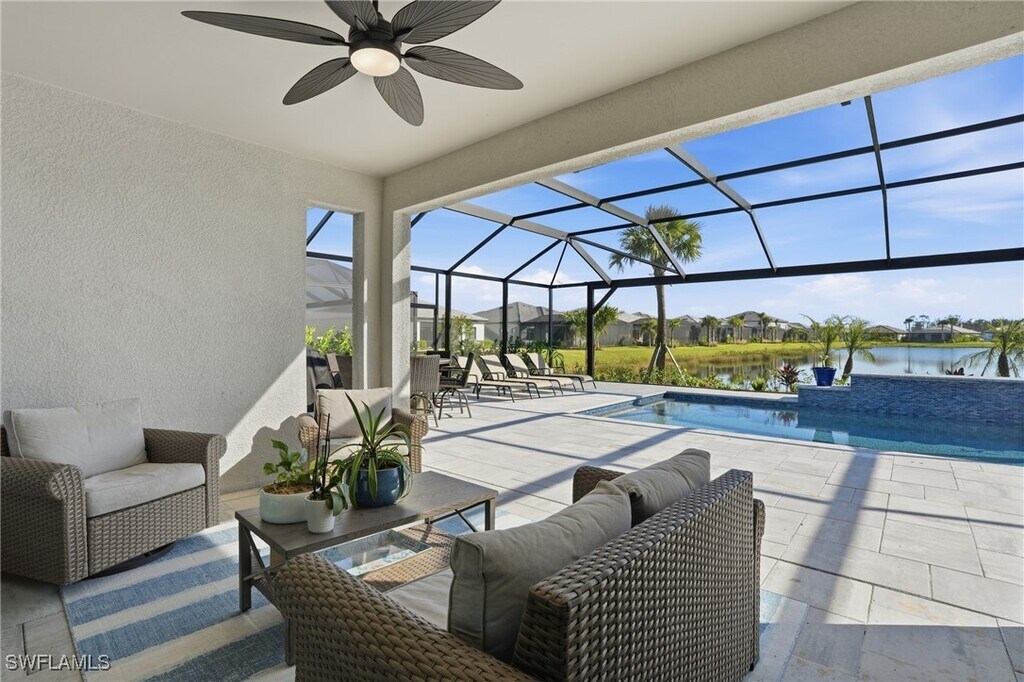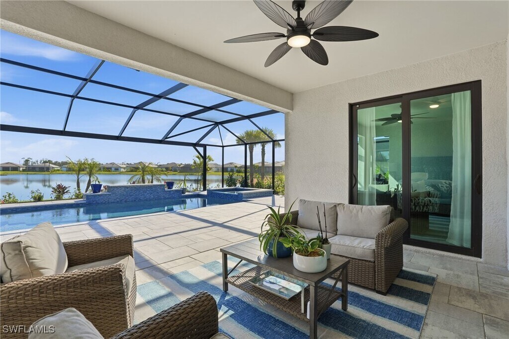 Experience resort-style living in this stunning 3-bedroom plus den,3-bath pool home located in the highly sought-after community of Verdana Village in Estero. This beautifully designed residence features an open-concept layout filled with natural light,a spacious great room,and a versatile den ideal for a home office or flex space. The gourmet kitchen flows seamlessly into the living and dining areas,perfect for entertaining. Step outside to your private custom screened-in pool and spa surrounded by a spacious lanai,offering the ultimate Florida lifestyle. Verdana Village offers world-class amenities,including a resort-style pool and spa,indoor and outdoor tennis and pickleball courts,a state-of-the-art fitness center,yoga lawn,bocce courts,dog park,playground,and on-site dining options. Conveniently located near top-rated schools,shopping,dining,and beautiful Gulf Coast beaches,this home perfectly blends comfort,convenience,and luxury living.