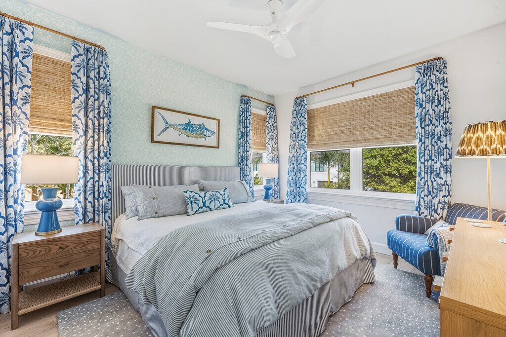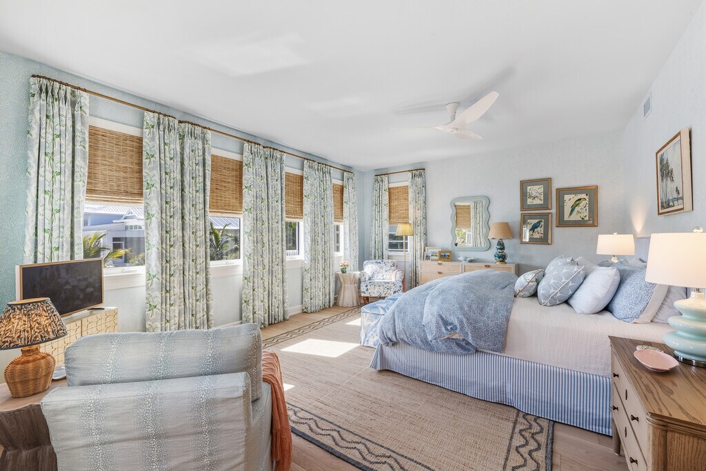 Welcome to 1874 18th Street, a fully reimagined waterfront retreat within walking distance to Boca Grande Village and just steps from the beach. This 4-bedroom, 4.2-bath home features two master suites, each with double showers—one with a soaking tub. All bedrooms offer king beds and luxurious ensuite baths with custom robes and slippers. Enjoy panoramic views of Charlotte Harbor, a chef’s kitchen with commercial-grade appliances, an elevator, and a recreation room with yard games and ping pong. Thoughtfully designed by Isabel Ladd Interiors, this island escape is the perfect place to relax, recharge, and make unforgettable Boca Grande memories.