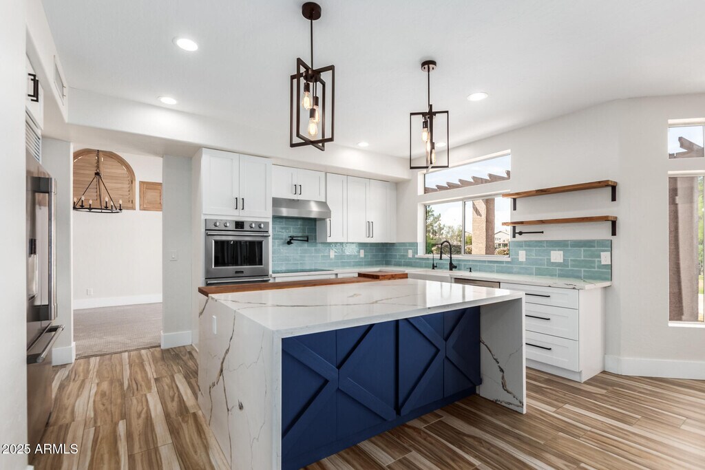 Golf Course/Lake Community Retreat! Solar Panels! Pool Service/Landscaping Included! Welcome to this stunning 5 Bedrooms,3 Bathrooms,Media/Bonus Room plus Office. Lot privacy allows you to enjoy the refreshing swimming pool,large backyard,basketball court & the golf course behind. Home is fully updated. It includes Gourmet Kitchen,Top Brand Appliances,Expansive Quartz Island,Custom Butcher Block,Farmhouse Wooden Shelves,Oversized Sink,Pot Filler,Convection Cook-top,Built-in Microwave,Elegant Lighting & Lots of Natural Light. Primary Bedroom boasts vaulted ceilings,views of the 4 peaks & large walk-in closet. Main bathroom features: oversized shower,double rain head controls & floating vanity. New flooring throughout. Media room wired for projector 175''screen. A must see