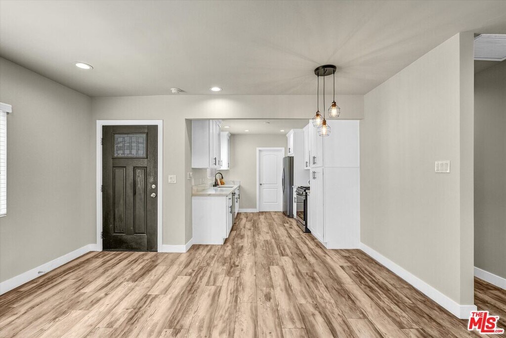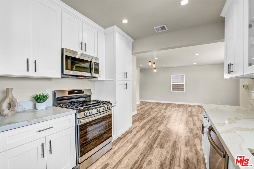 Welcome to this beautifully remodeled 3-bedroom, 2-bath front house located on a quiet residential street with plenty of parking. This bright and inviting home features a modern open floor plan with recessed lighting, central A/C, and all-newer finishes throughout. Enjoy newer kitchen with white cabinetry and stainless steel appliances, fully remodeled bathrooms, and newer dual-pane windows with stylish blinds. The spacious master suite offers a cozy fireplace and closet space. A separated laundry room with washer & dryer is included for convenience. Separate entrances for each home, a huge front yard, and multiple dedicated parking spaces. All newer appliances are included, making this home truly move-in ready. MLS# 26654823