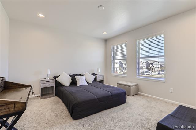 This beautiful newer townhouse boasts a spacious open floor plan with 3 bedrooms and 2.5 baths, an attached 2-car garage, hard surface floors on the main level, granite countertops in the kitchen and baths, all stainless steel appliances and the furniture in the bedrooms, dinning room and living room are included. Enjoy the upstairs with two secondary bedrooms, a full bathroom, and laundry room. Relax and unwind in the large owner's suite, opposite the secondary rooms for privacy, with a large shower, dual vanity, and a walk-in closet. Few minutes drive to Denver International Airport, E 470, I-225 and I-70. Townhouse MLS# 7041801