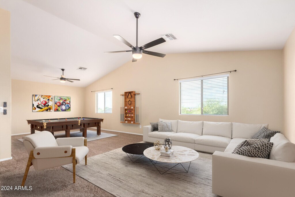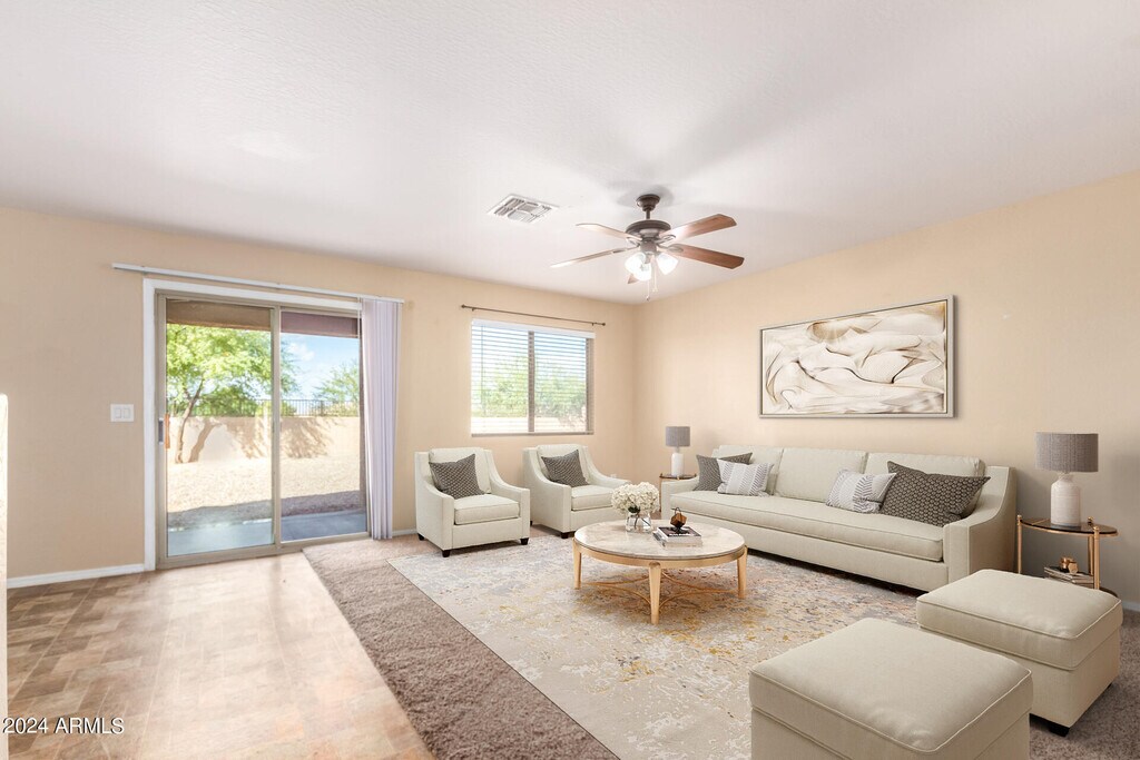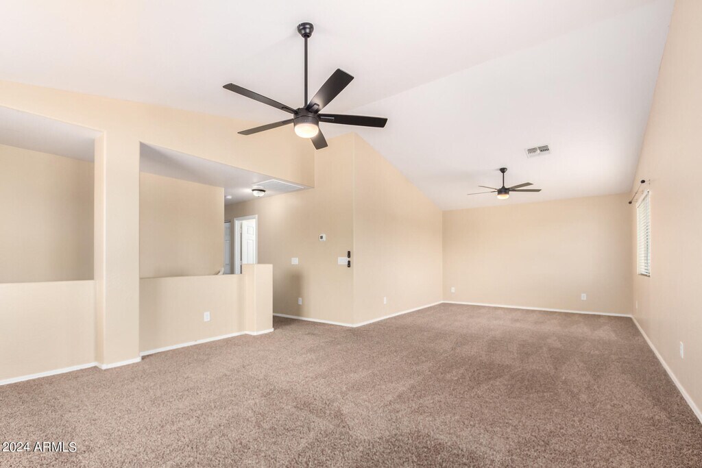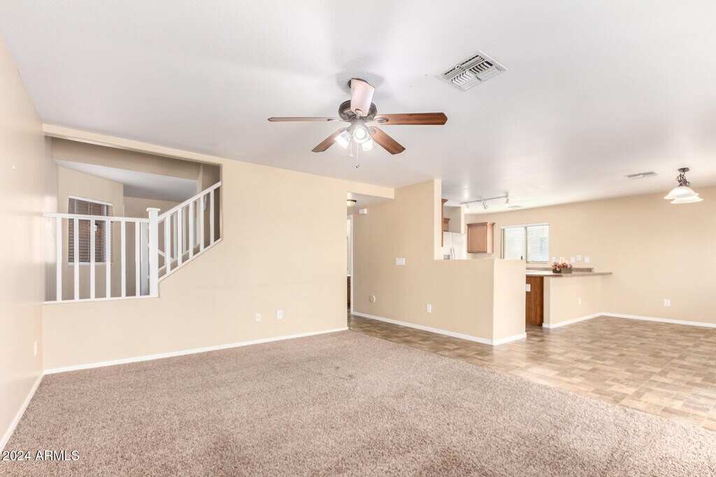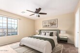 Rare gem alert! Incredible opportunity for privacy & space on large desert lot! This well-maintained beauty boasts features rarely found in one package. Prime location w/ no back neighbors & massive backyard perfect for entertaining. Versatile floorplan w/ downstairs bedroom/bath,& HUGE vaulted family room/loft upstairs offering endless possibilities for relaxation or recreation. Updated kitchen w/ SS appliances,maple cabinets & breakfast bar. Recent upgrades: newer HVAC,hot water heater,exterior light fixtures,fans,flooring and carpet. Fantastic community w/ parks & playgrounds,central to shopping & entertainment.