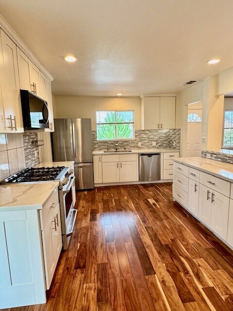 STUNNING 3/2 CONCORD SINGLE STORY HOUSE / EXTRA LARGE PARK LIKE BACKYARD / GARAGE/ WASHER & DRYER Ready for move in! Our house features an open concept floorplan, sun filled living room and model home kitchen. Large center kitchen island with beautiful pendant lighting over breakfast bar. Three spacious bedrooms, Two updated bathrooms and spacious backyard. * Beautiful White Kitchen-Quartz countertps, tile backsplsh & recessed lights * Kitchen- newer gas range, new microwave and abundance of white cabinets * No carpet- new laminate flooring throughout the house * New window blinds and double paned windows * Beautifully updated bathrooms- decorator vanities and tile floors * Lovely front and back yards * Two car garage with Washer and Dryer and utility sink * Open floorplan- living room with large windows allowing natural light * Central Heating and Air Conditioning with bedroom ceiling fans * Near great schools and neighborhood park and easy freeway access * Lots of closet space, garage space and yard space Tenant is responsible for utilities. Renters insurance is required through entire residency. Great home for long term renters. Astound Real Estate and Property Management, a professional property management company, CalBRE #01467064. This is a smoke free home. One small/medium pet is welcome with $35.00 monthly pet rent. We have breed restrictions.