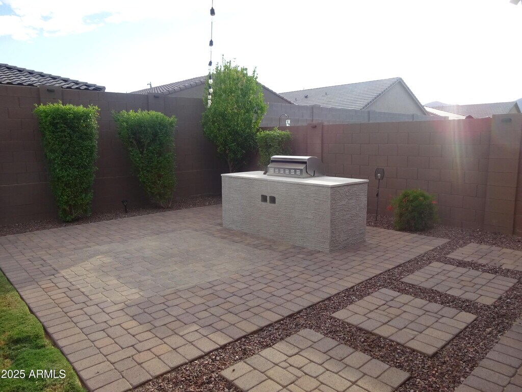 Discover serenity,style,and smart design. This home offers 1,902 sq ft of one-level living in the prestigious Zanjero Trails. Step inside to an open-concept great room,where a gourmet kitchen featuring a large island,quartz counters,and gas appliances overlooks the living areadesigned for effortless gatherings and daily ease. Retreat to plush carpeted bedrooms after tiled floors carry you through well-lit designer spaces. The lavish primary suite isn't just a sanctuaryit's a spa-inspired haven with separate shower and soaking tub,dual vanities,and a walk-through closet that conveniently leads to the laundry. Work,relax,or unwind in the flexible den. Outside,entertain under the covered patio,or enjoy low-maintenance desert landscaping and mountain viewsall with HOA grounds care ensuring carefree beauty. Neighborhood perks like well-lit walking paths,a playground,and a friendly,laid-back vibe set the stage for a lifestyle that's both connected and peaceful,with top-rated schools rounding out the appeal. If you want move-in ready,model-level quality plus community charm,this home delivers.