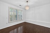 Spacious 2 bedroom, 2 bathroom condo in the Sparkling Water community, approximately 1,115 sq ft. This ground-level unit features hardwood floors throughout the living areas, spacious living room and dining room, crown molding, and plantation shutters. French doors open to a covered patio with extra storage. The kitchen offers granite countertops, stainless steel appliances including a gas range, white cabinetry with glass-front uppers, and a built-in wine rack. The primary bedroom includes a bay window with plantation shutters, a walk-in closet, and an en-suite bathroom with a soaking tub. The second bedroom has its own full bathroom with a tub/shower combo and glass door. In-unit full-size washer and dryer. Community amenities include pool and gym. Conveniently located near shopping, dining, and commuter routes. Online application. One application per adult, $50 application fee. Excellent credit is required. Pets are considered on a case-by-case basis with a $50/month pet fee per pet.