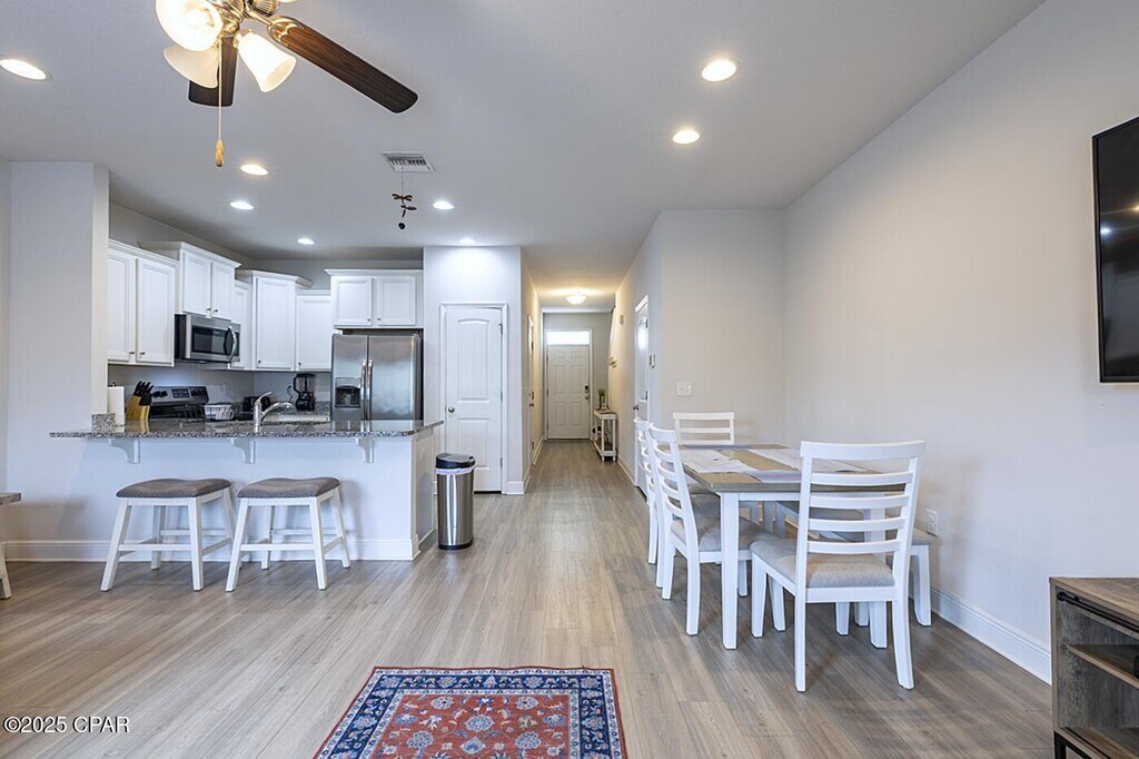 Welcome to Hathaway Townhomes -- your perfect blend of comfort, convenience, and coastal living! Offered furnished or unfurnished - this beautiful, 3-bedroom, 2.5-bath townhome offers a spacious open-concept layout with modern finishes throughout. The first floor features a bright living and dining area with durable luxury vinyl plank flooring, a half bath, and a stunning kitchen complete with granite countertops, stainless-steel appliances, pantry, and breakfast bar -- ideal for everyday living or entertaining. Upstairs, you'll find three well-appointed bedrooms, including a primary suite with walk-in closet and a double-vanity bath. Laundry is conveniently located on the second floor, along with an additional full bath. Enjoy your morning coffee on the private patio, or spend your afternoons at the community pool just steps away. Available furnished or unfurnished, this home offers the flexibility to move right in or bring your own personal touch. The location is unbeatable -- just minutes from the beach, Navy Base, shopping, dining, medical facilities, and top-rated schools like Breakfast Point Academy and Arnold High. Additional highlights include a one-car garage, three-car driveway, energy-efficient windows, central HVAC, and easy access to major roads. Pets may be considered with approval. Trash and Landscaping included in rent. Security deposit equal to one month's rent. Experience coastal comfort in a modern setting -- schedule your showing today and make Hathaway Townhomes your next home!