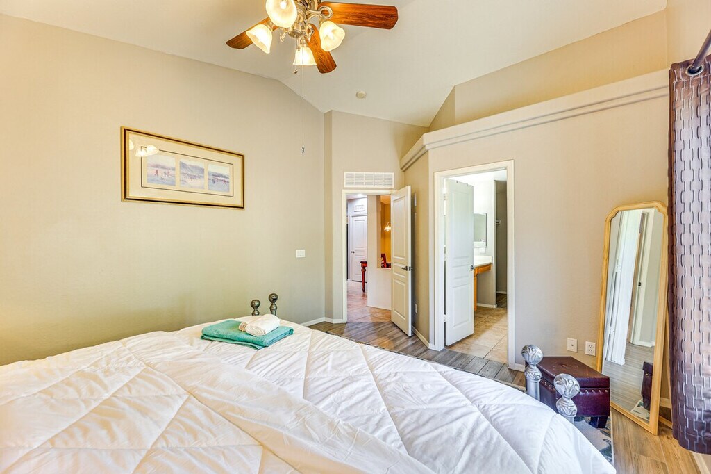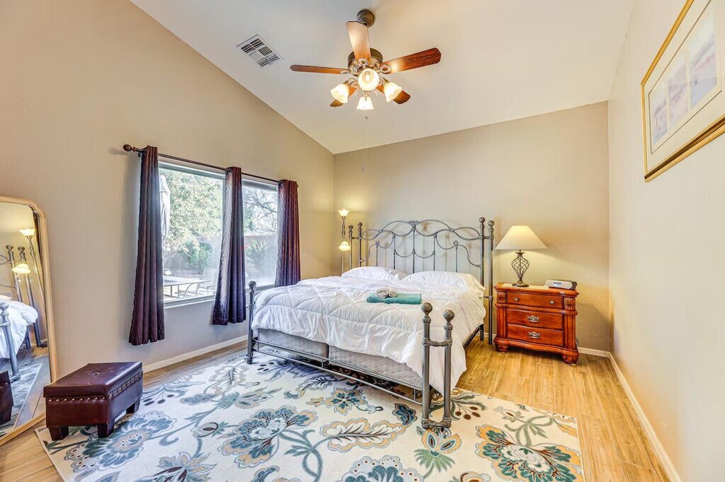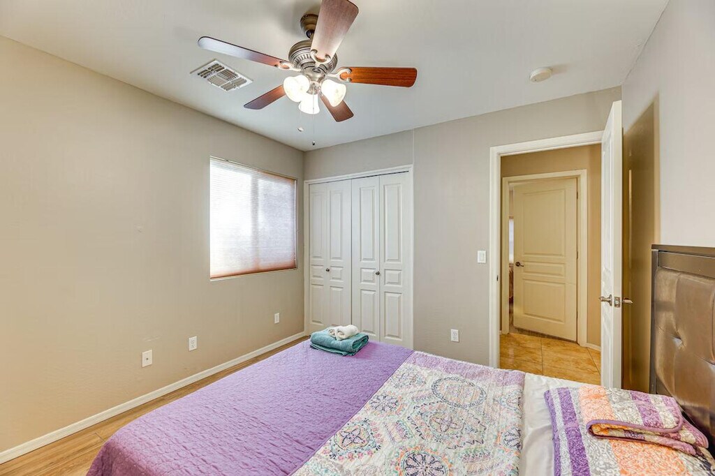 The advertised rate of $4,884/month is the lowest available price, based on a 30 day(s) stay with a move-in date of March 1, 2026. Rates vary depending on the duration of stay, season, and other parameters. For exact pricing and additional pricing components, please visit our website and enter your desired move-in and move-out dates. The rate is applicable when billed upfront; it can be higher if billed in multiple payments. Feel at home in this Casa Grande vacation rental, a 4-bedroom, 2-bath single-story home offering a perfect home base for work, leisure, or family time. There is one small step for entry. This home has all the essentials for an extended stay, including a full kitchen, outdoor living space with a patio and dining area, a gas grill, and in-home laundry with a washer, dryer, and laundry detergent. The kitchen is equipped with a refrigerator, stove/oven, dishwasher, microwave, drip coffee pot, blender, toaster, Crockpot, rice cooker, cooking basics, dishware, flatware, trash bags, and paper towels. Entertainment options include a Smart TV and DVD player. Central air conditioning and heating, ceiling fans, linens, towels, complimentary toiletries, a hair dryer, and hangers are provided. Garage parking is available for 2 vehicles, as well as driveway parking for 2 vehicles. Free street parking is also available. A crib is available upon request. You'll be close to dining and activities, with the downtown area 5 miles away and the Casa Grande Ruins 20 miles away. Smoking, pets, events, parties, and large gatherings are not allowed. [SI]