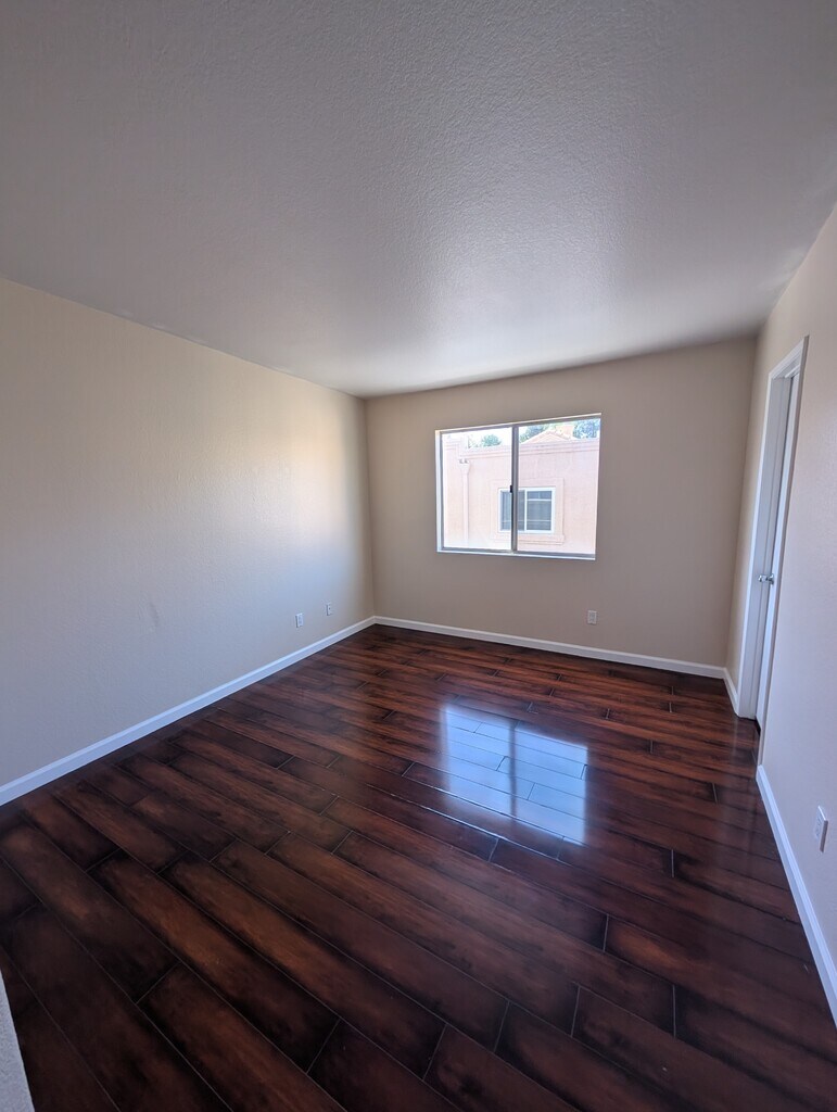 Upper 2-bedroom 1-bath condo in a gated community. This cute home is located in Newhall near Costco off Via Princessa. Upon entering the home, you have two stairs to the left that lead down into the one-car garage and stairs to the right leading up into the home. All living space is located upstairs above the garages. Laminate flooring throughout, with vinyl flooring in the bathroom. This home has lots of natural light and high ceilings. The family room is located at the top of the stairs with a dining area leading into the kitchen. The kitchen has a gas stove, microwave, and dishwasher. A new refrigerator is being delivered next week. New blinds are on order and will be installed before move-in. This home has two hall bedrooms that share one hall bathroom. The bedroom at the end of the hall has a walk-in closet and overlooks the garages. The hall bathroom has dual sinks and a tub/shower combination. Washer and dryer hookups are located in the garage. Tenant will need to provide their own. The home comes with one garage spot. Tenant will need to use the garage spot for parking if they wish to apply for an additional resident parking permit. This community also has a community pool.
