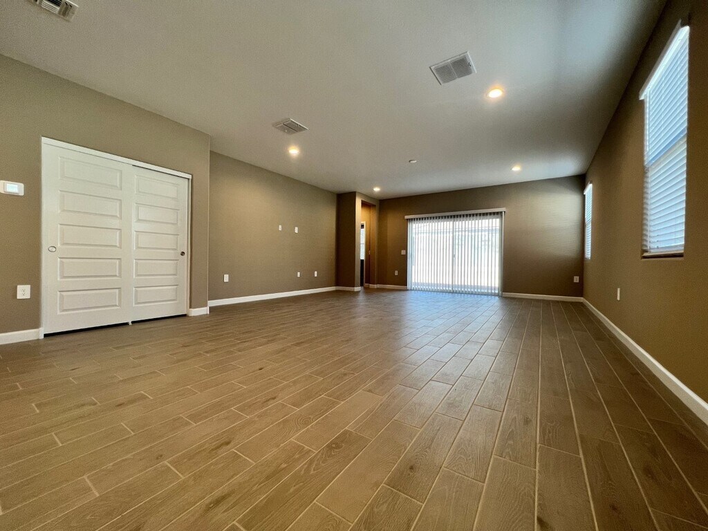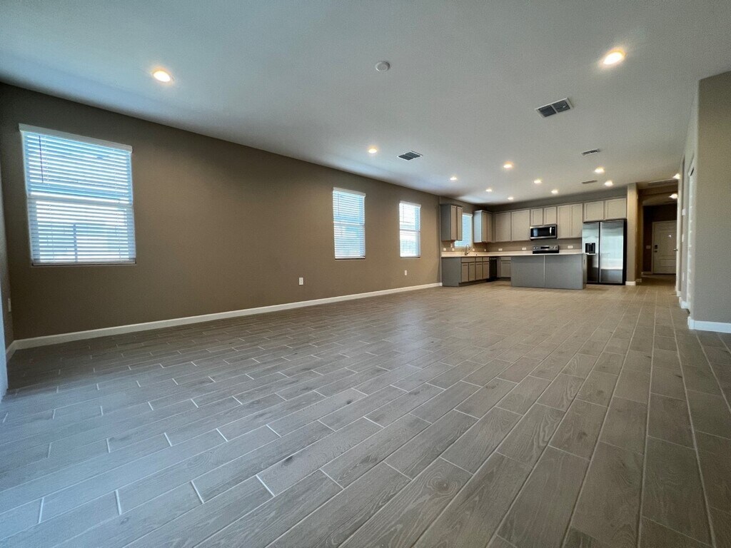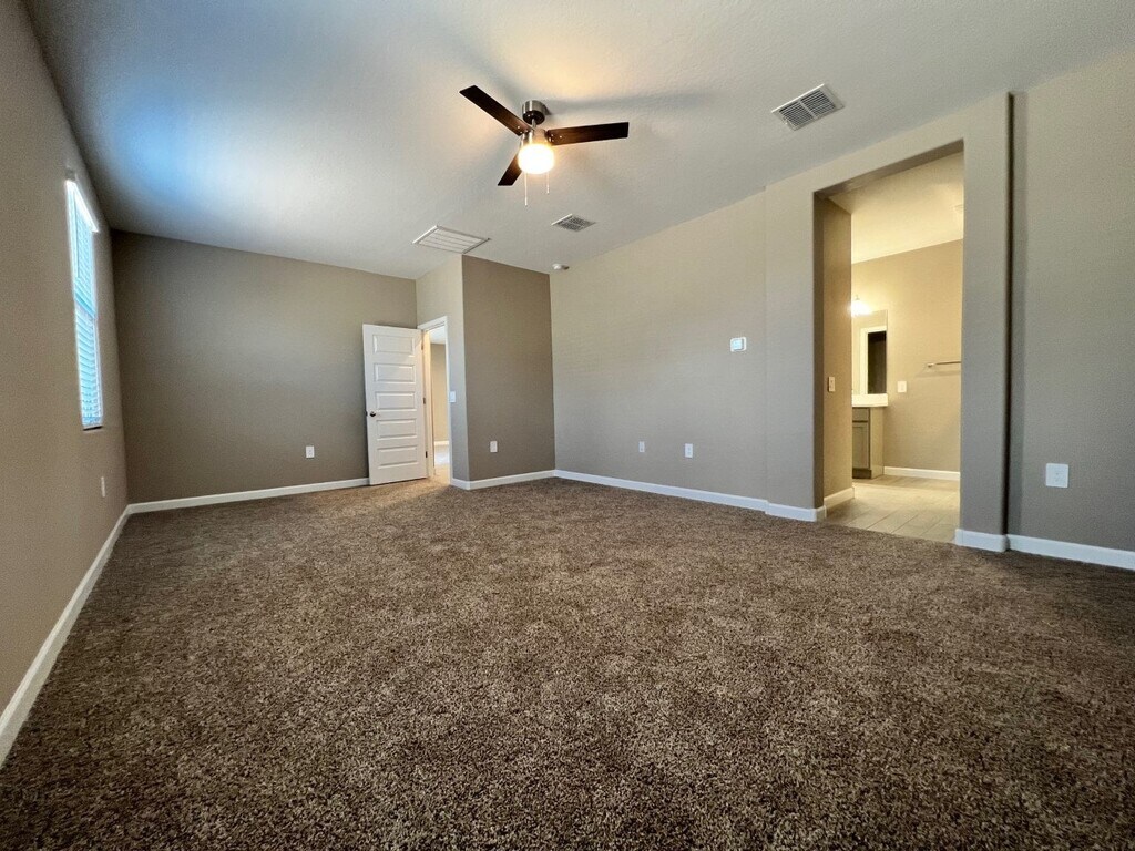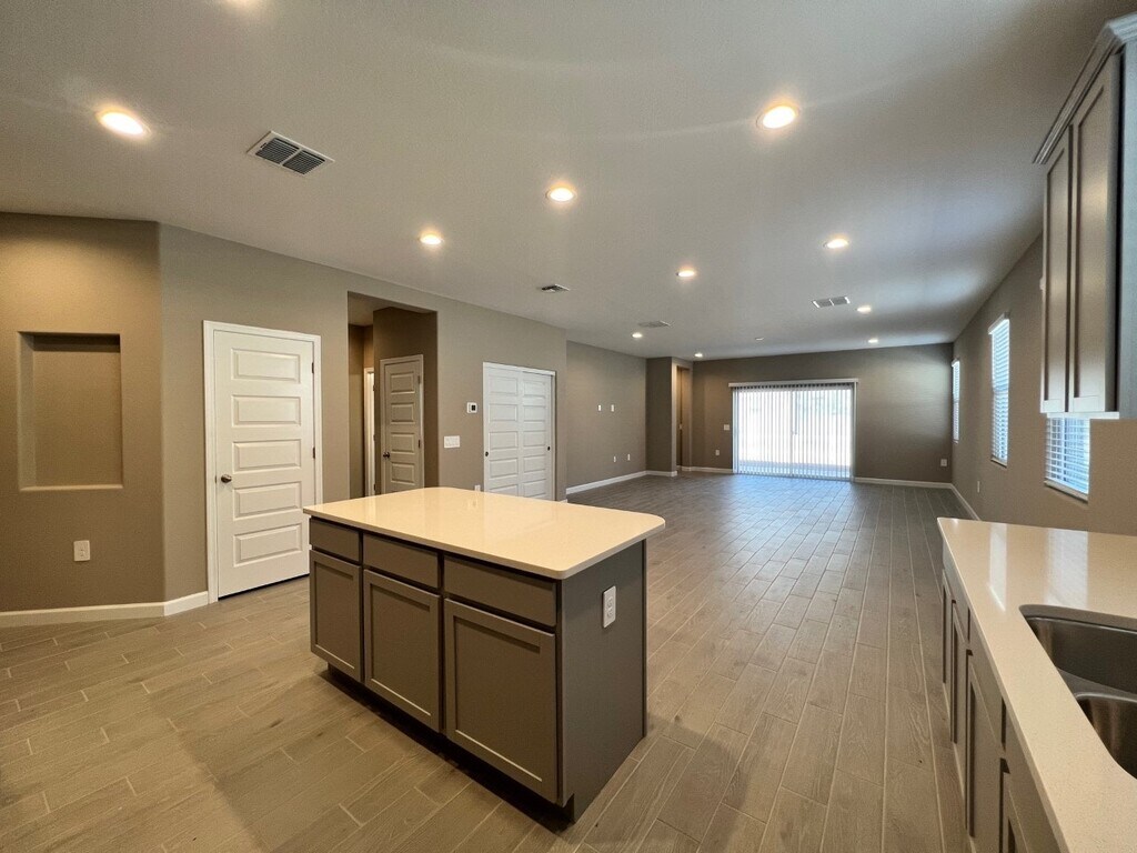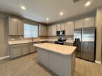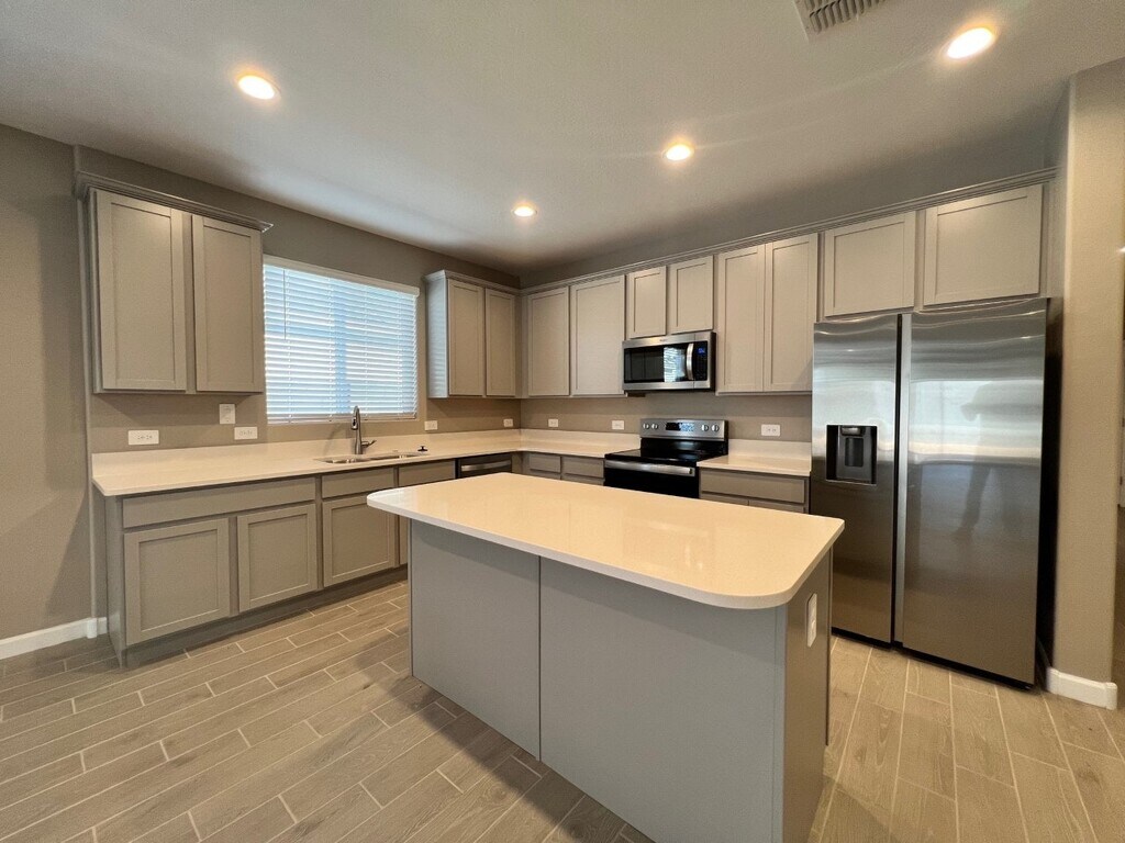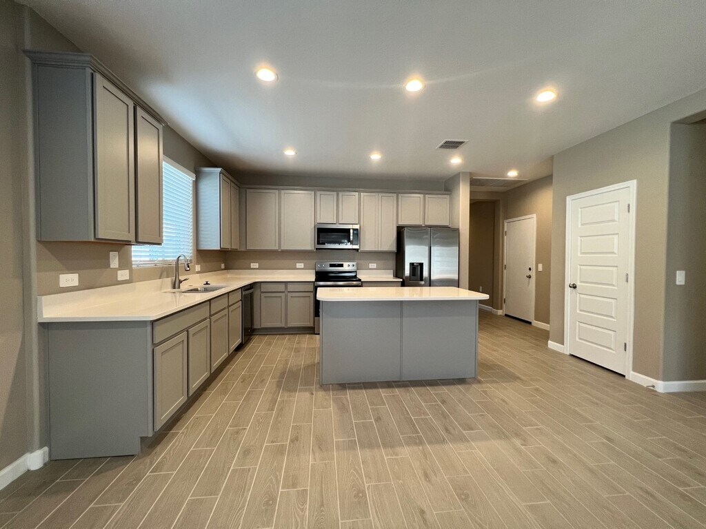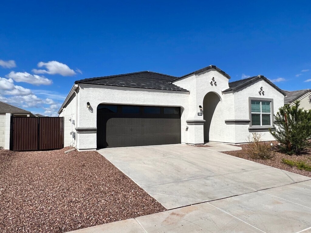This 2,200+ sq ft house in the beautiful Vista de Montana community in Buckeye provides room for everyone and everything with 4 bedrooms plus a den, 2 full bathrooms, and separate living room and dining areas, all in a thoughtfully designed split floorplan. The main living areas feature wood look tile, which perfectly compliments lush carpet in each of the bedrooms. The kitchen is absolutely breathtaking, and features matching stainless steel appliances, grey shaker cabinets, ample storage space, quartz counters, and an island with room to pull up stools or high-back chairs. The primary bedroom is oversized, and offers a walk in closet and en-suite bathroom with dual vanity sinks and a glass shower enclosure. Add to that a 2 car garage, a covered back patio, a low-maintenance desert landscaped front yard, 9' ceilings, recessed lighting, 3" baseboards, ceiling fans, window coverings and modern features & fixtures throughout. To view a video tour of this property, please copy and paste the following link into a new browser tab/window: Listed by Firefly Property Management, LLC