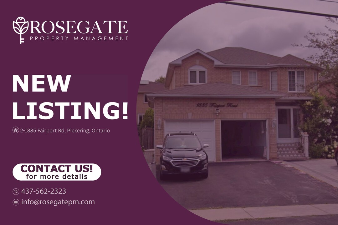 All-Inclusive 1-Bedroom + Den Basement Apartment with Internet – Pickering Welcome to 2–1885 Fairport Road, Pickering — a spacious basement apartment offering approximately 1,200 sq. ft. of comfortable living space.This 1-bedroom + den, 1-bathroom unit features a generous and functional layout, ideal for professionals, couples, or individuals needing extra space for a home office or guest area.The unit offers a clean and practical setup, complete with central heating and air conditioning for year-round comfort. The kitchen includes a microwave, and laundry is available with shared washer and dryer.All utilities are included — even internet — making monthly expenses simple, predictable, and stress-free.This is a great option for those looking for extra space without the extra bills.Located in a convenient Pickering neighbourhood close to transit, shopping, parks, and everyday amenities, this professionally managed rental offers both comfort and value.Book your viewing today.