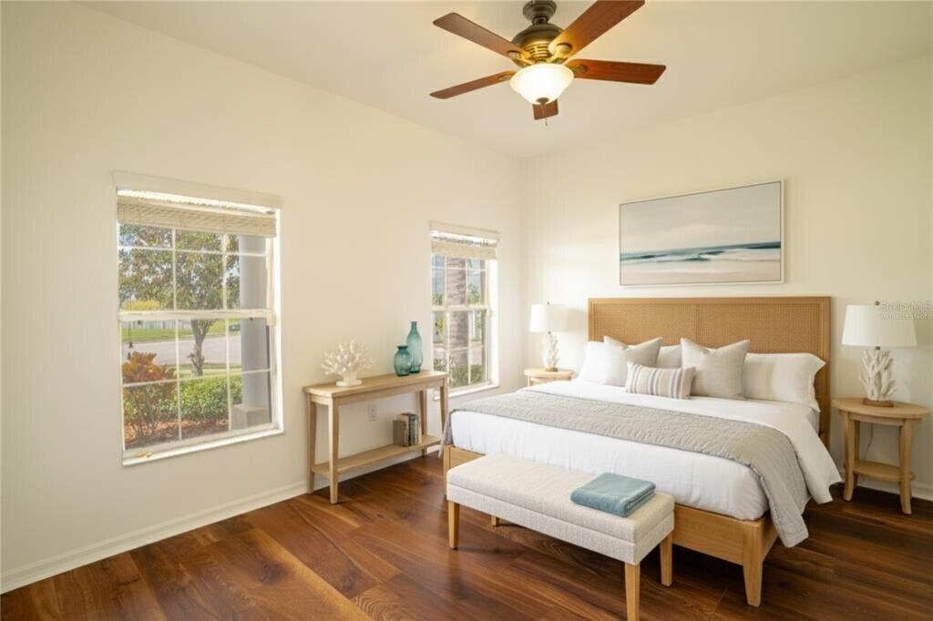 One or more photo(s) has been virtually staged. Spacious 4 Bedroom / 3 Bath Home with Lake Views and No Rear Neighbors! Discover your private retreat in this beautifully designed 4-bedroom,3-bathroom home located at the end of a quiet street — offering no through traffic,no rear neighbors,and peaceful lake views from both the front and back porches. Step inside to an inviting triple-split floor plan that provides space and privacy for everyone. The primary suite features a large walk-in closet and a luxurious bathroom complete with double vanities,a soaking tub,and a separate walk-in shower. Two additional bedrooms also include walk-in closets,and two of the bedrooms have private attached bathrooms — perfect for guests or multi-generational living. The heart of the home is the upgraded kitchen,featuring 42-inch cabinets,solid stone countertops,and a spacious bar area ideal for entertaining. Enjoy high ceilings,an indoor laundry room,and a two-car garage for added convenience. Relax outdoors on the covered front porch with serene lake views or unwind in the fully screened-in back porch overlooking open space and water views — your perfect spot for morning coffee or evening sunsets. MLS# P4937014