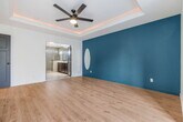 Welcome to a home that truly shines for its thoughtful design, generous space, and beautiful presentation. From the moment you step inside, the open layout and high ceilings create an immediate sense of comfort and expansiveness, complemented by convenient storage closets and a well-placed half bath on the lower level. The downstairs bedroom is bright and welcoming, offering exceptional versatility. Whether you’re looking for a fourth bedroom, a comfortable guest retreat, a dedicated home office, or even a cozy media room, this space easily adapts to your lifestyle. At the heart of the home is the gorgeous kitchen, complete with stainless steel appliances, an expansive walk-in pantry, and a sleek quartz island bench that’s perfect for meal prep, entertaining, or simply enjoying your morning coffee. The kitchen flows effortlessly into the spacious living room, where a large sunlit window and a cozy fireplace create a warm and inviting atmosphere. From here, step directly into the fully fenced private backyard with very low maintenace. Upstairs, the primary suite feels like a peaceful retreat, featuring a generous walk-in closet and a beautifully designed ensuite with double sinks and multiple showerheads for a luxurious, spa-like experience. The additional bedrooms are equally bright and spacious, with high ceilings and easy access to their own full bathroom. Throughout the home, durable vinyl plank flooring ensures low-maintenance living, while ceiling fans throughout provide year-round comfort and excellent airflow. A thoughtfully designed laundry room adds everyday convenience, offering built-in cabinetry, a sink, and a dedicated folding area. The oversized 2-car garage provides ample storage, making organization simple and giving you the extra space every household appreciates. With its modern finishes, expansive layout, and warm, welcoming feel, this home offers comfort, style, and practicality in every room. Perfectly situated in a highly desirable area, you’ll enjoy close proximity to fantastic shopping, restaurants, parks, and excellent schools—making this an ideal place to call home.