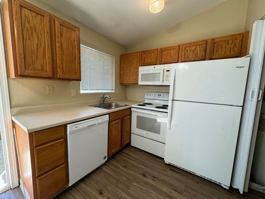 Great 900 SqFt, 2 bedroom 1 bath unit. Spacious living room with high ceiling. Kitchen complete with refrigerator, stove, built-in microwave, dishwasher and disposal. Washer/Dryer hook ups. Fenced back area with covered patio. Single car garage. Water/Sewer/Trash included in rent. Great location in Rock Creek area in quiet cul-de-sac! NO Smoking. NO Pets. Drive by and then call to schedule a viewing. Our leasing agent has all paperwork to get you started. A $65 application fee is required at time of application. A security deposit and first month's rent required for move in. Check us out on the web, Information deemed reliable but not guaranteed. ADI Properties Inc Portland Tigard Tualatin Beaverton Aloha Hillsboro Forest Grove
