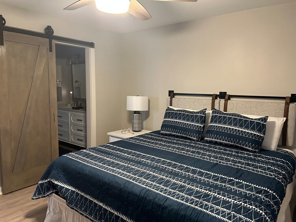 Welcome to this completely renovated home featuring granite countertops, stainless steel appliances, new LVP flooring, and fresh paint. The luxurious master suite includes a double sink marble vanity. Enjoy the fenced front yard and an outbuilding for guest storage. Conveniently located close to schools, stores, shopping, restaurants, Hwy 20, and I-575, you'll feel at home in this beautifully updated space. This home offers four bedrooms and two full baths. The hall bath features a tub shower combo, while the master bath boasts a large custom shower with frameless glass. The entire home is designed for comfort and style, making it an ideal place to relax and unwind. Guests have access to the entire home along with the storage building, providing ample space for all your needs during your stay. Situated in a prime location, this home provides easy access to nearby schools, shopping centers, restaurants, and major highways like Hwy 20 and I-575. Whether you're commuting or exploring the local area, you'll find everything you need just a short distance away. This property is designed for comfort and convenience, ensuring a pleasant stay for all guests. [SI]