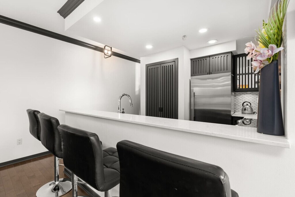 The advertised rate of C$14,395/month is the lowest available price, based on a 30 day(s) stay with a move-in date of August 15, 2026. Rates vary depending on the duration of stay, season, and other parameters. For exact pricing and additional pricing components, please visit our website and enter your desired move-in and move-out dates. The rate is applicable when billed upfront; it can be higher if billed in multiple payments. Feel at home in this stunning 931 sq ft 1-bedroom sub-penthouse, offering breathtaking views of False Creek, the mountains, and the city. This elegant home features an open-concept living and dining area with floor-to-ceiling windows, 9-foot smoothed ceilings, and exquisite engineered hardwood floors. The modern kitchen is a chef's dream, boasting stainless steel appliances, quartz countertops, and a sophisticated marble backsplash. Relax in the updated bathroom with a soaker tub and rainforest showerhead. The living room, with its cozy fireplace, provides the perfect ambiance for relaxation. Please note that the fireplace is available for heating only; the flame feature is not available. Guests have access to all amenities within the apartment. The gym is a shared amenity in the building. TV is a smart TV, and apps such as Netflix, Prime, and Crave can be used with personal logins. The neighborhood surrounding Science World is part of the False Creek area, characterized by its waterfront views, modern residential developments, and vibrant community spaces. The immediate vicinity offers a family-friendly atmosphere with numerous attractions such as the Olympic Village, Creekside Park, and the Seawall, which is perfect for walking, cycling, and jogging. Nearby, you'll find a variety of dining options, from casual eateries to fine dining, as well as cafes and breweries that contribute to the lively, social ambiance. The area is well-served by public transportation, with the Main Street-Science World SkyTrain station providing easy access to downtown Vancouver and other parts of the city. Additionally, the False Creek Ferry offers a scenic route to various points along the waterfront. Ride Shares are easily accessible. YVR Airport is a 20 minute drive, West Vancouver is a 15 minute drive, and Downtown Vancouver City Centre is a 3 minute drive. The nearest grocery and pharmacy are a 5 minute walk, the Olympic Village is a 5 minute walk, and Rogers Arena and BC Place are a 10 minute walk. No unauthorized guests, no parties, and no smoking on the property or on the patio. No events are allowed. Includes an office desk and chair, perfect for remote work. Registration Number: 26-162757 [SI]