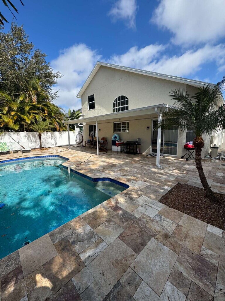 Welcome to this spacious two-story 3-bedroom, 2.5-bath pool home with an additional loft area, offering a functional layout and comfortable indoor-outdoor living. As you enter the home, you are greeted by an entryway with a staircase. To the right is a convenient half bathroom, indoor laundry room, and access to the garage. To the left, you will find a formal dining area. The home opens into a large kitchen featuring stainless steel appliances and a breakfast bar, flowing seamlessly into the eat-in kitchen and living area. Off the living room is the primary bedroom, filled with natural light from sliding glass doors leading to the covered back porch. The primary suite includes an ensuite bathroom with dual sinks, a soaking tub, a walk-in shower, and a spacious walk-in closet. Upstairs, you will find two guest bedrooms, a full bathroom, and a loft space ideal for a home office or additional living area. Step outside to the stone pool deck with a private pool and covered porch, perfect for outdoor living. Pool and lawn service are included in the rent. Pets allowed with owner approval and additional security deposit per pet. OPTIONAL: All Legacy Properties residents can enroll in the Resident Benefits Package (RBP) for $59.95/month which includes liability insurance, credit building to help boost the resident's credit score with timely rent payments, up to $1M Identity Theft Protection, HVAC air filter delivery (for applicable properties), move-in concierge service making utility connection and home service setup a breeze during your move-in, our best-in-class resident rewards program, on-demand pest control, and much more! More details upon application. Residents are required to have renter's insurance.