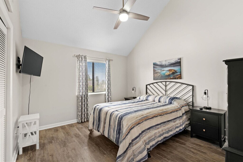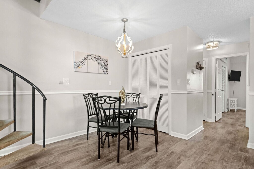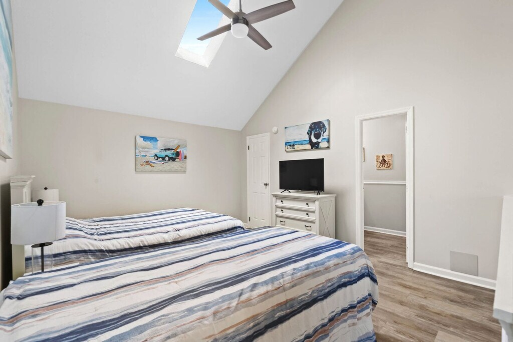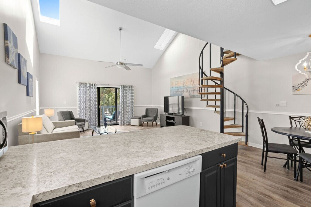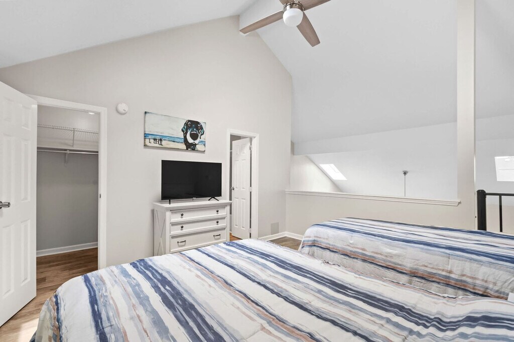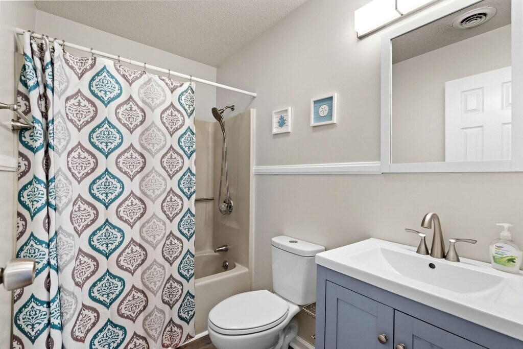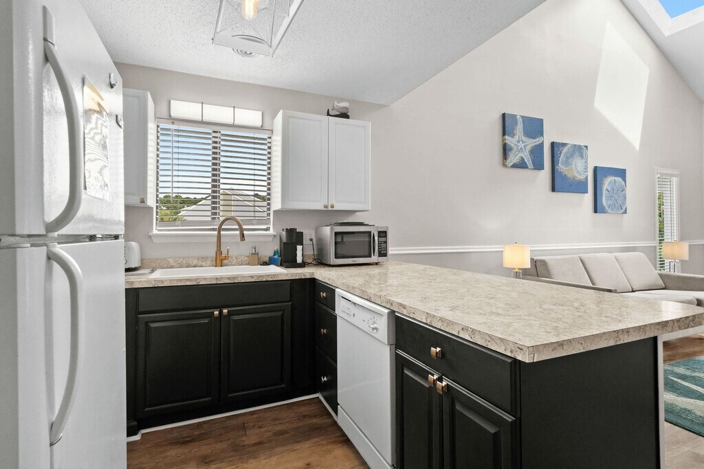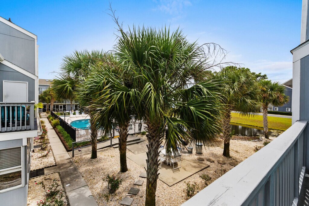 You'll feel at home in this stylishly remodeled end unit condo, a well-kept secret in Surfside's Golf Colony at Deerfield. This 1120 sq ft condo is perfectly located between Bypass Hwy 17 and Business Hwy 17. The downstairs primary bedroom features a comfortable queen pillow top mattress and an en suite bath with a shower/tub combo. The spacious loft with vaulted ceilings has a queen bed, en suite bath, and a large walk-in closet. The living room has vaulted ceilings and contains a memory foam full-sized sleeper sofa. The fully equipped kitchen includes the newest Kuerig on the market for excellent coffee. Enjoy the spacious pool deck in the back courtyard, including a hot tub, or watch it all from the deck overlooking the pool. You can rent a gas-powered golf cart to get around during your stay if you don't plan on going super far, and there is access to amenities by golf cart during the day. Pool and beach chairs are available for rent through a link after booking. Golf Colony Deerfield is a centrally located, quiet, and comfortable resort in the heart of Surfside Beach, close to many great options. It's just 1.5 miles from the closest Surfside Beach access, placing you within 15 minutes of almost anywhere on the South Strand. Quiet hours are between 11 pm and 7 am as per Surfside Beach ordinance. Please consider your neighbors, and keep noise at a reasonable level. Guests must be 25 or older to book. No smoking and no pets are permitted. [SI]