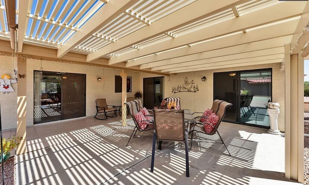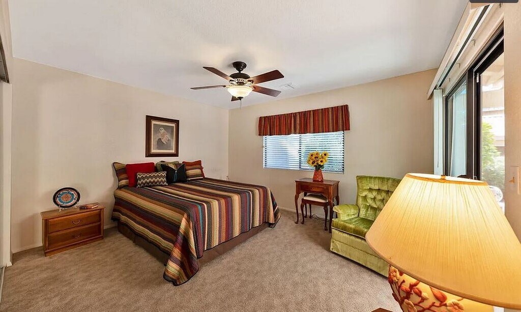 This expanded Santa Monna has an additional bonus room perfect for an office ,craft room or den. Beautiful tile in all the right places. Huge back patio measuring 342 square feet has a block wall with a large pergola, misters, fruit trees and south exposure. Newer microwave, dishwasher. AC unit.