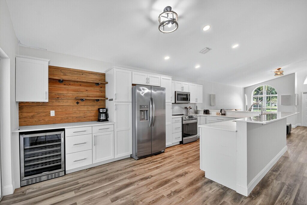 Just minutes from all major equestrian venues. Ideal for seasonal Rent. Fully furnished beautiful remodeled, 3 bedrooms, 2 bath pool & Spa home in Wellington Edge. Unique kitchen with new cabinets, quartz countertops and all new stainless-steel appliances. Bar area including in the kitchen. Contemporary laminate flooring throughout the entire home. New Vanities/tops and lighting in both bathrooms. Covered patio and screened patio with spa and no neighbors behind
