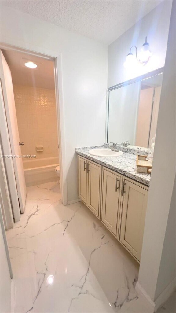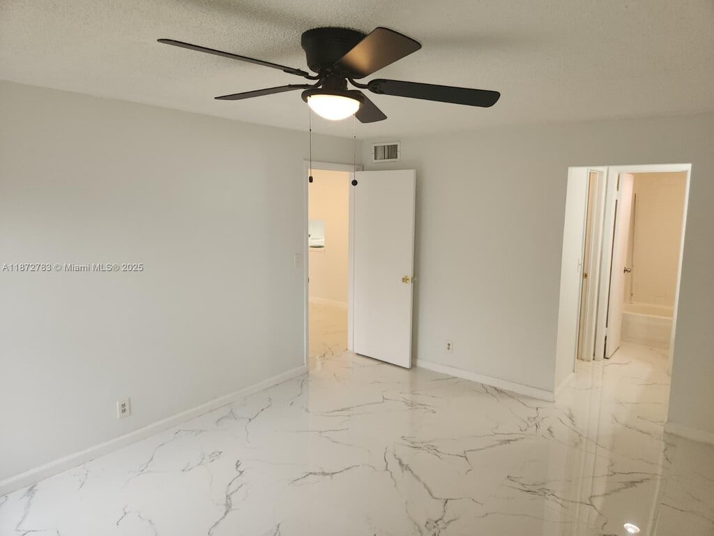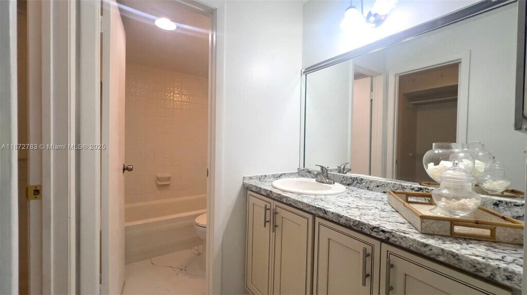 Freshly painted and move-in ready! Spacious 1 bed / 1.5 bath condo on the 2nd floor of a quiet, pet-friendly community. Features stunning new porcelain tile floors with a marble look, plenty of natural light, and enclosed Florida room. The kitchen offers ample cabinet storage, pass-through window, and appliances including a new microwave. The large bedroom includes a walk-in closet, ceiling fan, and private ensuite bath with granite countertops. Additional half bath and multiple closets provide great storage. Community amenities include a laundry facility on the same floor and a pool. Tenant requirements: 650+ credit score, household income at least 2.5x the monthly rent, background check, first month’s rent, and 2 months' security deposit.