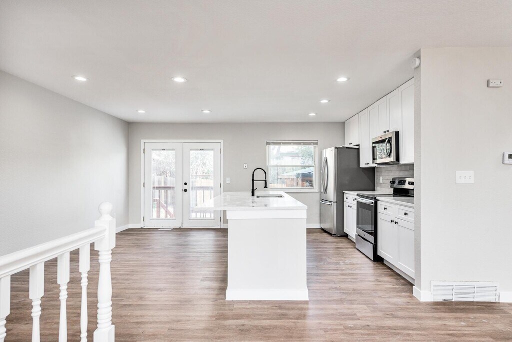 Enjoy living in this beautifully remodeled home featuring all your favorite modern comforts — including a spacious yard, excellent location, and stylish upgrades!This 4-bedroom, 2-bath home showcases new wood flooring throughout (no carpet!), generously sized rooms, and a gourmet kitchen with brand-new cabinets and quartz countertops. Fresh paint, updated lighting, and thoughtful finishes give this home a bright, contemporary feel.Both bathrooms feature custom tile work and modern vanities, adding a touch of luxury. With two living rooms, you’ll have plenty of space for entertaining, relaxing, or creating a home office or playroom.Conveniently located just minutes from groceries, shops, and I-225, you’ll enjoy an easy commute to the Denver Metro area.Schedule your showing today — this one won’t last long! Fully remodeled 4 bed, 2 bath home with modern finishesAll-new wood floors throughout (no carpet!)Spacious yard – great for entertaining or relaxingGourmet kitchen...