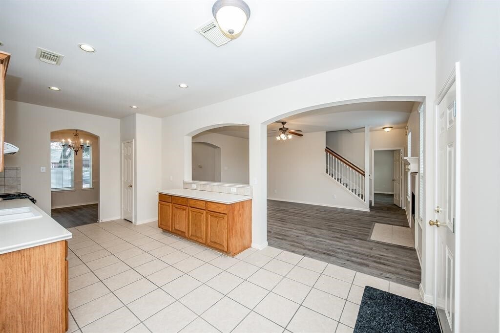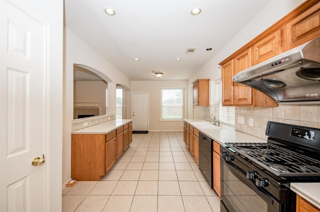 Stunning two-story,four-bedroom,2.5-bath brick home conveniently located near I-10 Barker Cypress/Greenhouse. Featuring a brand new range and dishwasher,fresh paint,and premium SPC flooring throughout—no carpet. The roof was replaced in 2020. Enjoy privacy with no backyard neighbors. The high-ceiling foyer with a tiled entryway welcomes you into this charming home. The kitchen boasts marble counters,a tiled backsplash,and tiled floors. The master suite is on the main floor,offering a garden tub,separate tiled shower,and double vanities in both full baths. Upstairs,you'll find three additional bedrooms and a spacious game/family room. Large,bright arched windows,tiled bathrooms,a vast yard,motion sensor alarm,and crown molding add to the home's appeal. Located just 8 miles from the Energy Corridor,7 miles from Katy Asian Town,and 5 miles from Katy Medical Center. THIS IS A MUST-SEE! MLS# 70649597
