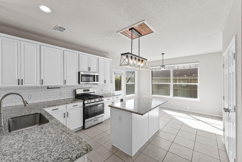 This stunning home offers high ceilings,abundant natural light,and an open layout perfect for everyday living. The spacious living room flows seamlessly into the updated bar kitchen featuring granite countertops,stainless steel appliances,and a stylish subway tile backsplash. Enjoy both a formal dining room and a cozy breakfast nook. The large primary suite includes a luxurious bath with soaking tub,separate shower,dual sinks,and an oversized walk-in closet. Upstairs offers a versatile gameroom ideal for family or entertainment. Step outside to a generous backyard with a patio,perfect for gatherings. Located on a quiet cul-de-sac street with a 2-car attached garage,double-wide driveway,and convenient access to shopping,dining,and top-rated schools. MLS# 65020719