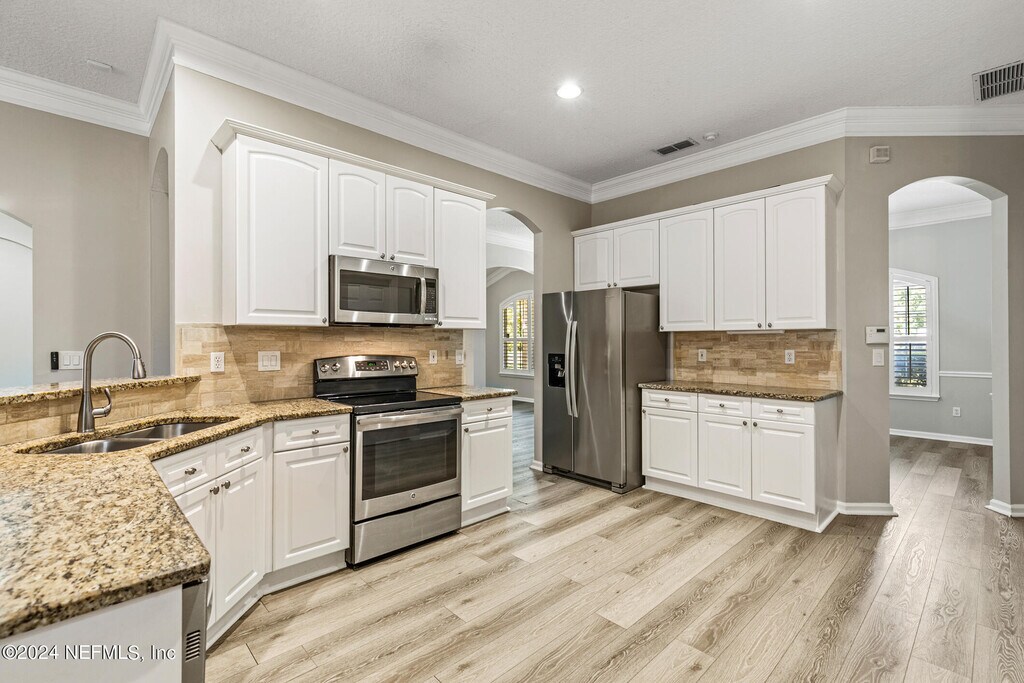Ready for move in,this beautiful 4 bed,3 bath Eagle Harbor home is tastefully renovated throughout. Upon entry is a spacious office area & formal dining room leading through to the sizable open kitchen,living room & additional eating area. Kitchen offers white cabinets,granite countertops,large walk in pantry & plenty of countertop space. Laundry room located off the kitchen where both the washer & dryer are provided. LVP flooring throughout the main living areas and bedrooms w/ tiled bathrooms and neutral paint throughout. Split floor plan offers a spacious Primary Bedroom w/ plenty of room for extra office space,workout area or quiet reading area. Primary bath offers dual vanities,granite countertops & both a garden tub & walk in shower. Across the hall there are 3 further bedrooms - one completely separated from the rest w/ its own bathroom,perfect for when guests come to stay. Two other bedrooms share a jack & jill bathroom. Private and fully fenced yard! MLS# 2116144
