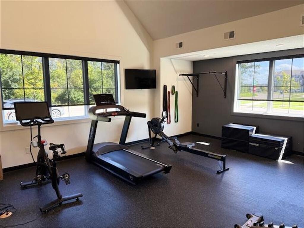 Available now. Newly constructed 3 bedroom home has the primary bedroom on the main level, with 2 additional bedrooms plus a family room on the lower walkout level. The kitchen features a center Island with granite counters and stainless steel appliances. The laundry room has a washer and dryer provided for you. The insulated garage is oversized to hold 2 cars and storage. The main floor living room features a gas burning fireplace. Luxury vinyl plank flooring in the living areas and carpet in the bedrooms. Pets allows with a pet fee and extra deposit. This rental neighborhood has a community clubhouse, outdoor swimming pool, fitness center, and walking trails. Close to shopping, daycare and grocery stores. The $75 monthly stress-free living fee includes lawn care, snow removal, water softener salt refills, furnace filter replacements. Other floorplans on single family rental homes are available depending on your move-in date. Section 8 payment is not accepted at this time. Schedule your showing today!