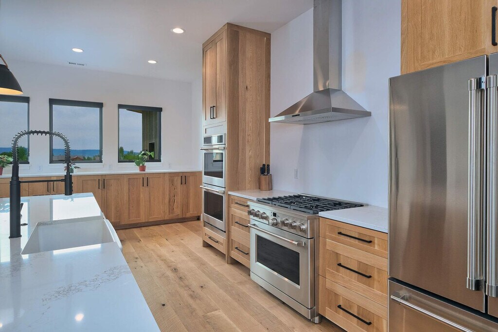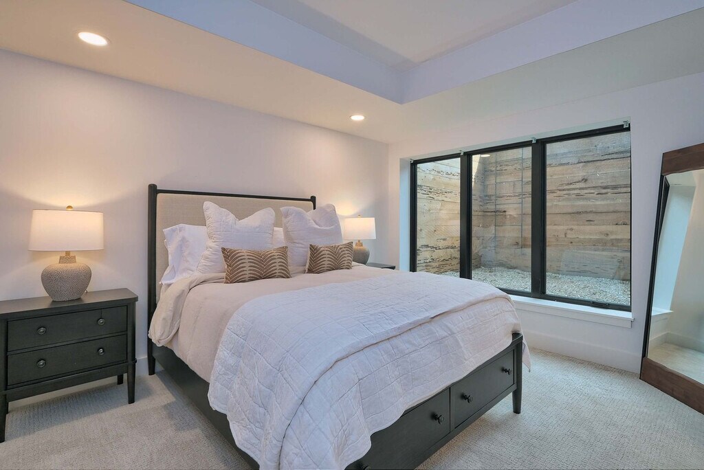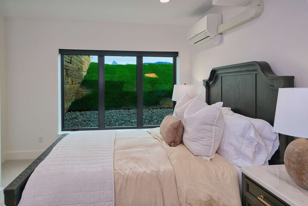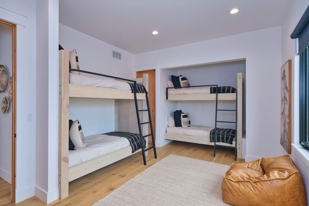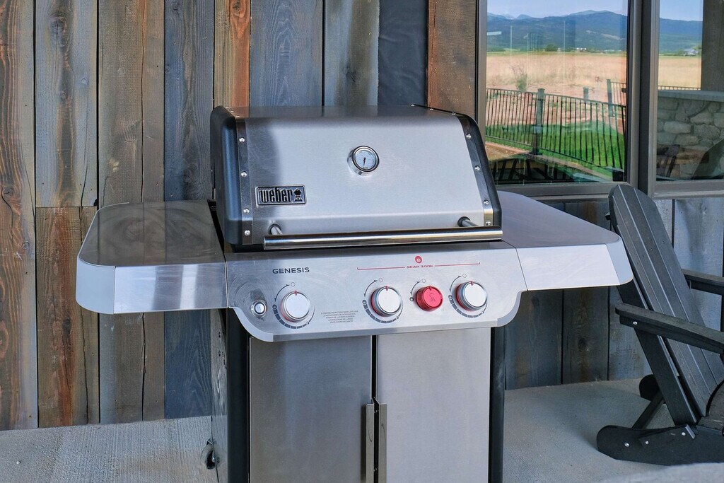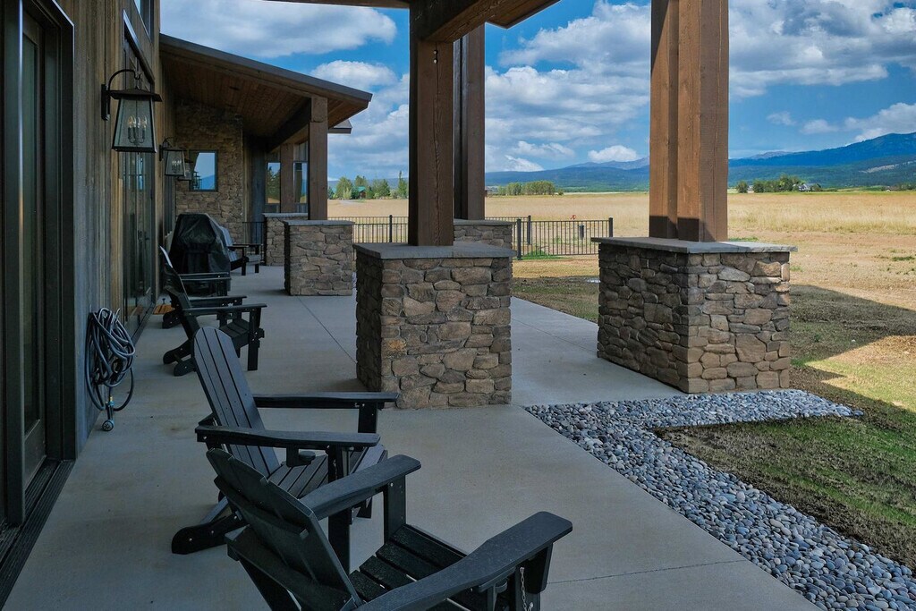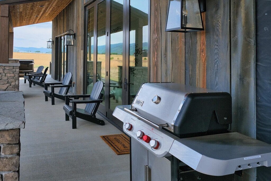 Welcome to a modern mountain retreat in Teton Valley, offering panoramic views of the Grand Tetons. This luxurious 6-bedroom, 4.5-bathroom home spans over 5,500 sq ft and is situated on a private 6-acre lot. Enjoy seamless indoor-outdoor living just 20 minutes from Grand Targhee Resort and 45 minutes from Jackson Hole. This newly built home in Driggs, Idaho, combines modern design with rustic elegance, providing unforgettable views of the Grand Tetons from nearly every room. The spacious layout is perfect for gatherings, featuring a vaulted great room with floor-to-ceiling windows and a cozy gas fireplace. The fully equipped chef’s kitchen is ideal for creating memorable meals. After a day of adventure, unwind in the private hot tub with panoramic views or enjoy a movie night in the home theater with a 4K projector and 120” retractable screen. The home accommodates up to 12 guests across 6 spacious bedrooms and 4.5 bathrooms, including a master suite with a king bed, fireplace, and ensuite with a soaking tub. The property offers ample driveway parking and a garage space. Enjoy the covered front and back patios with seating and a gas grill for BBQ nights. Located in the scenic Teton Valley, Driggs is a peaceful mountain town known for its wide-open landscapes and friendly community. Just 45 minutes from Jackson Hole and surrounded by rivers, trails, and national parks, Driggs offers the perfect balance of nature, privacy, and small-town charm. The home is situated on a quiet 6-acre lot just outside the town center, surrounded by rolling fields and wildlife, yet only 10 minutes from downtown Driggs where you’ll find local coffee shops, farm-to-table restaurants, grocery stores, and art galleries. Outdoor enthusiasts will find paradise here, with Grand Targhee Resort just 20 minutes away for skiing, hiking, and biking, and the Teton River and nearby national forests offering world-class fly fishing and horseback riding. The property does not permit pets or smoking of any kind. Quiet hours are from 8:00 PM to 8:00 AM, and fireworks are not allowed. The maximum number of guests cannot exceed 12. There is a strict no events policy, with violations resulting in a $2,500 fine and immediate cancellation of your reservation. Exterior lights should be turned off at night to preserve the dark sky environment. A maximum of four licensed vehicles are allowed in the driveway, and no recreational vehicles are permitted on the property. The home includes an office with Teton views, perfect for remote work. It features Wi-Fi-controlled heating and cooling zones for comfort during work hours. [SI]