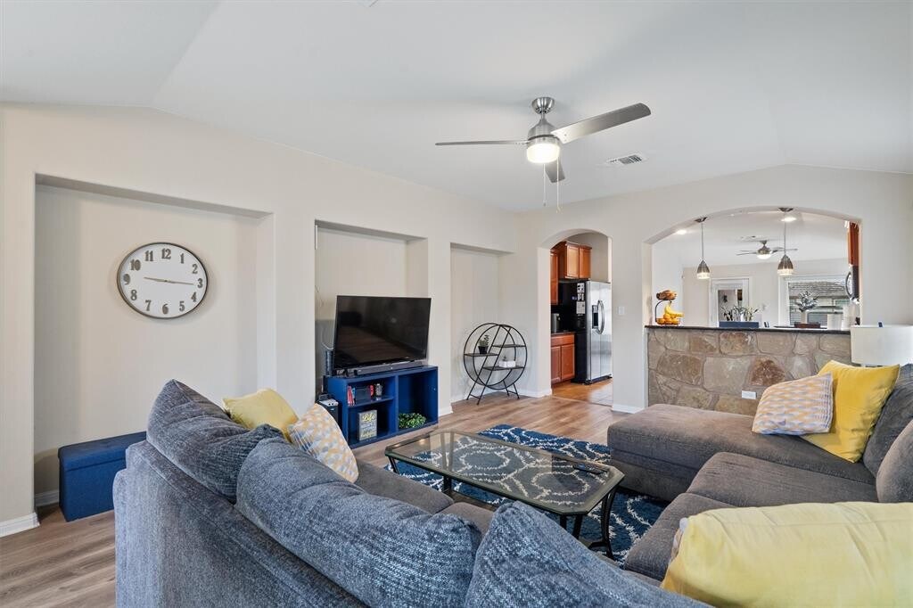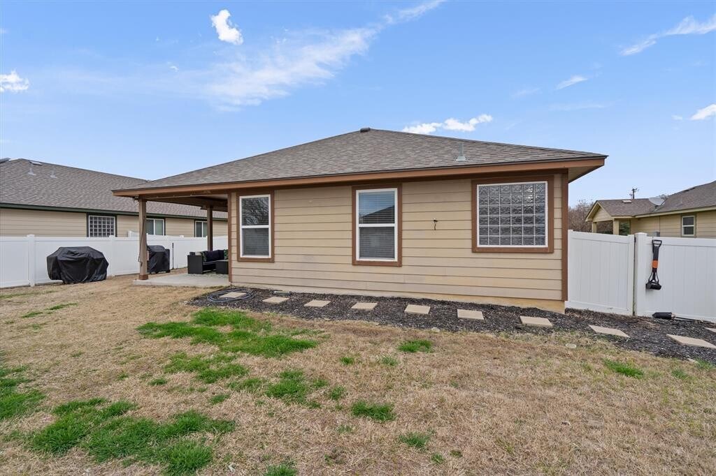 Exceptional value spacious single-story home with no carpet anywhere, one of the neighborhood's largest fenced yards, and pet friendly. Don't miss out on this charming 3 bedroom, 2 bath, 1509 sq ft home in popular Highland Park featuring vinyl and tile flooring, a fully fenced backyard, covered patio, small front porch, included fridge, granite counters, and ample storage in the kitchen with a center island. Ideal for entertaining, this one-story residence offers excellent indoor and outdoor space, conveniently located near prominent companies like Dell, Samsung, and Apple, as well as major expressways including I-35, Toll 45, and 130.