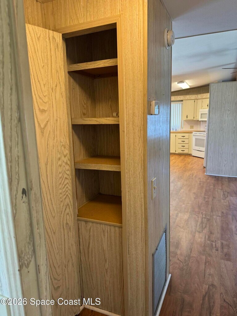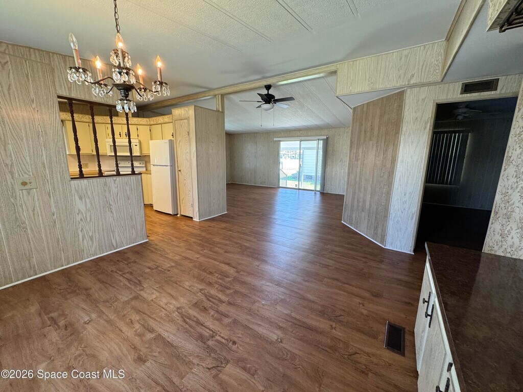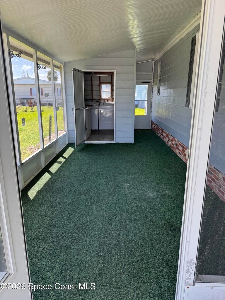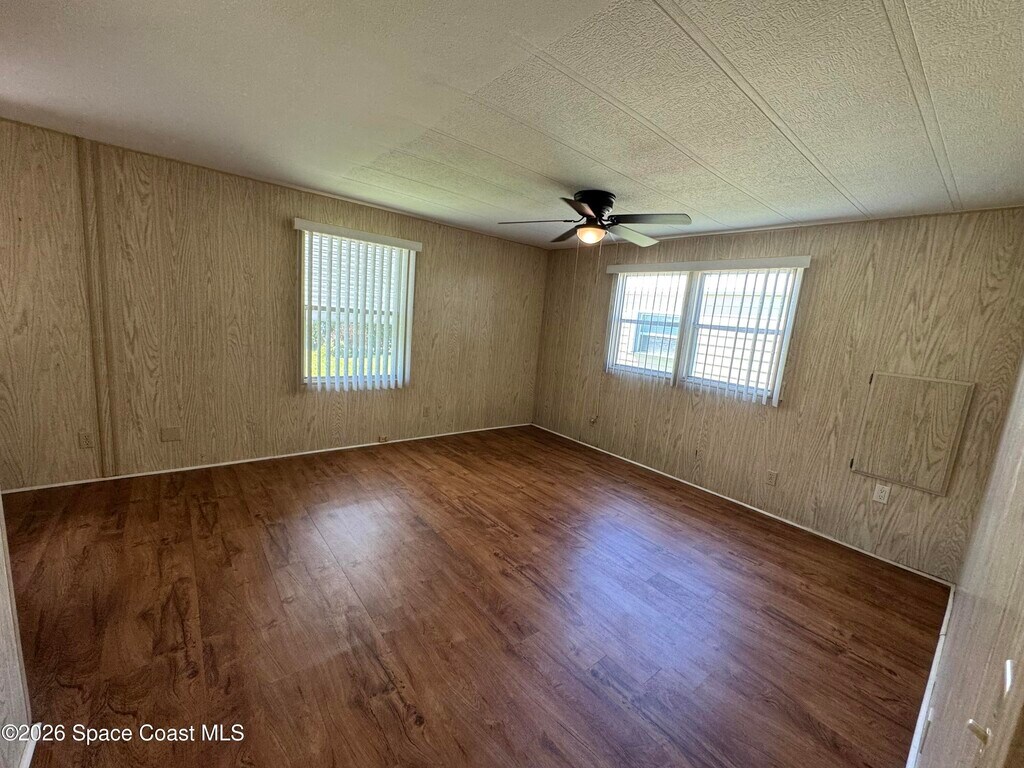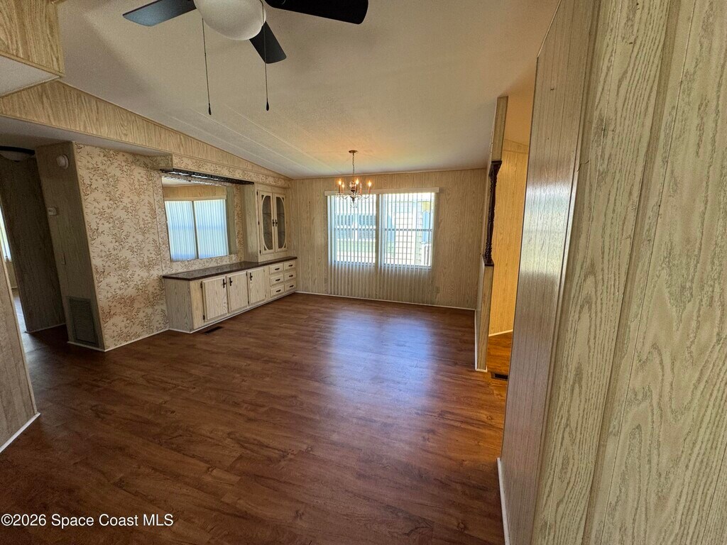 Welcome to an active lifestyle in this 55+ community. This is a spacious two bedroom two bathroom home in Palm Bay Colony. Walk-in closets and ceiling fans in both bedrooms. Primary bedroom is equipped with it's own bathroom. Newer kitchen appliances including the refrigerator,stove,and microwave. Built-in cabinets in dining room. Wood look floors and window treatments throughout. Additional storage attached to the large screened porch.. Additional storage outside. Large driveway with covered carport for parking.. Lot is in an excellent location being only 100 feet from amenities including a clubhouse,swimming pool,lounge area,tennis court,pickleball courts,shuffleboard court,grills,and car wash area. Community has sidewalks and bike paths for your convenience. MLS # 1074877