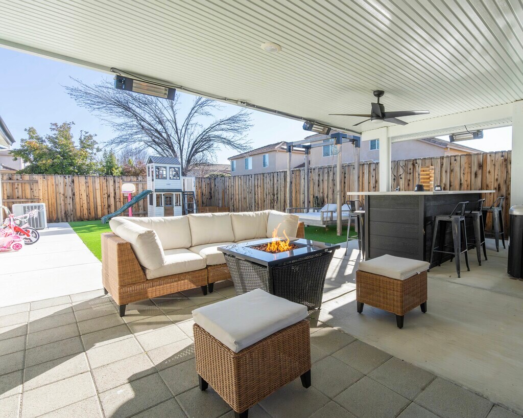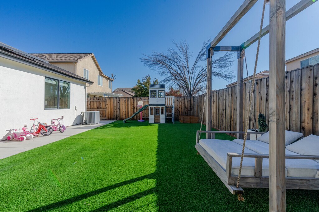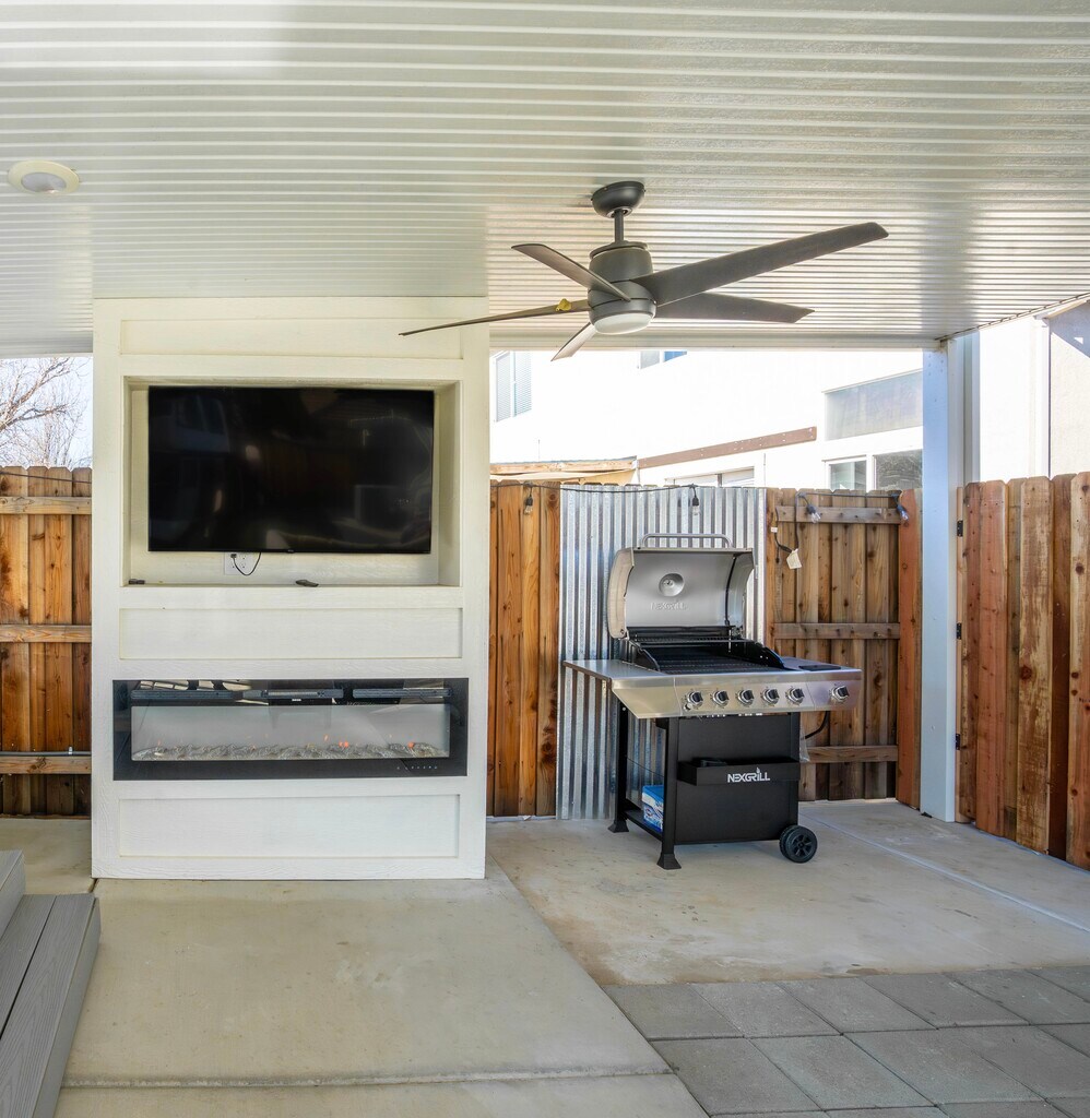 Welcome to this beautifully furnished 3-bedroom, 2-bath home designed for comfort, privacy, and convenience. The home features a smart split-floor plan—the master suite is on one side, separated by the kitchen and living area, while two guest bedrooms and a full bath are on the opposite side. This layout is ideal for traveling nurses, coworkers, or families who want to share a space while still enjoying privacy. The open living and family room are perfect for relaxing, watching movies, or playing games. The fully equipped kitchen includes cookware, utensils, and BBQ essentials for both quick meals and home-cooked dinners. • Bedroom 1: Queen bed with new furniture and comfortable bedding • Bedroom 2: Cozy guest room with a crib and extra supplies for families • Guest Bathroom: Full shower/tub with shampoo, conditioner, and body wash • Master Suite: King bed, double-sink bathroom, walk-in closet, and clothing steamer • Laundry: Washer and dryer included Enjoy the updated backyard with outdoor TV, plus Netflix and high-speed Wi-Fi. The garage offers extra fun with a pool table and a fully equipped home gym, along with board games for all ages.
