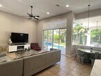 Spacious one story with triple split floor plan Abundance of natural light with large windows and tall ceilings throughout give perfect views to your private pool and completely fenced back yard Home sits on an oversized lot 3 car garage and extended driveway for extra parking Home is pet friendly and allows for 1 mascot The home has a proper dining area and living room as well as a family room Covered patio is perfect for shade and sunny days at your own pool and extended pavers give room for hosting guests and entertainment Primary room has double walk-in closets tall shower separate tub and double sinks each with large counters. Cabana bath and separate laundry room are super convenient for new tenants. Lease includes weekly Pool maintenance and landscaping Live carefree in Sunset lakes