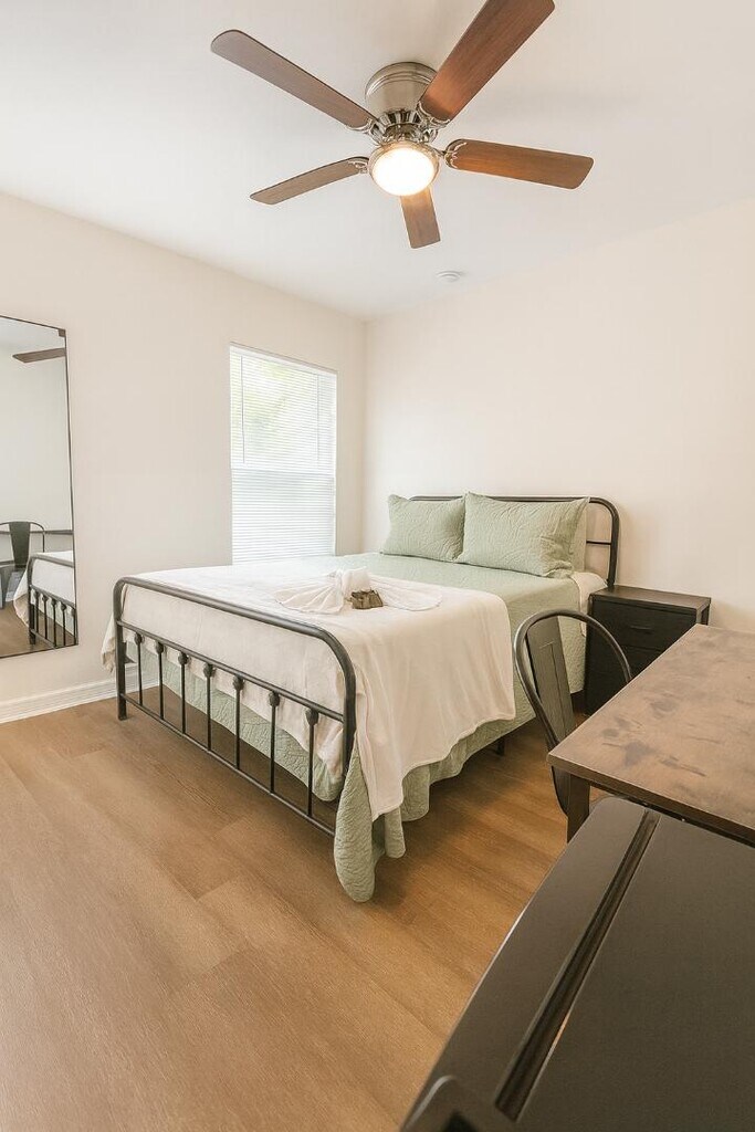 Enjoy a bright and comfortable private bedroom designed for peaceful stays. The room features a cozy full-size bed, soft linens, blackout blinds, a dedicated desk for work or study, fast Wi-Fi, and plenty of natural light.You’ll share a clean bathroom with just a few respectful house members. The home is professionally managed, quiet, and ideal for travel nurses, students, remote workers, and long-term guests seeking a safe and organized environment. Discover comfort and convenience at 1895 Avenue H NW, a charming single-family home located in Winter Haven, FL. This cozy 200 sq ft master bedroom offers a perfect blend of style and functionality with hardwood flooring, air conditioning, heating, ceiling fan, and controlled access for your security. The unit comes furnished and includes essential appliances like a refrigerator and range. Enjoy the property's attractive amenities such as lakefront views, on-site maintenance, housekeeping, and smoke-free living. Flexible short-ter...