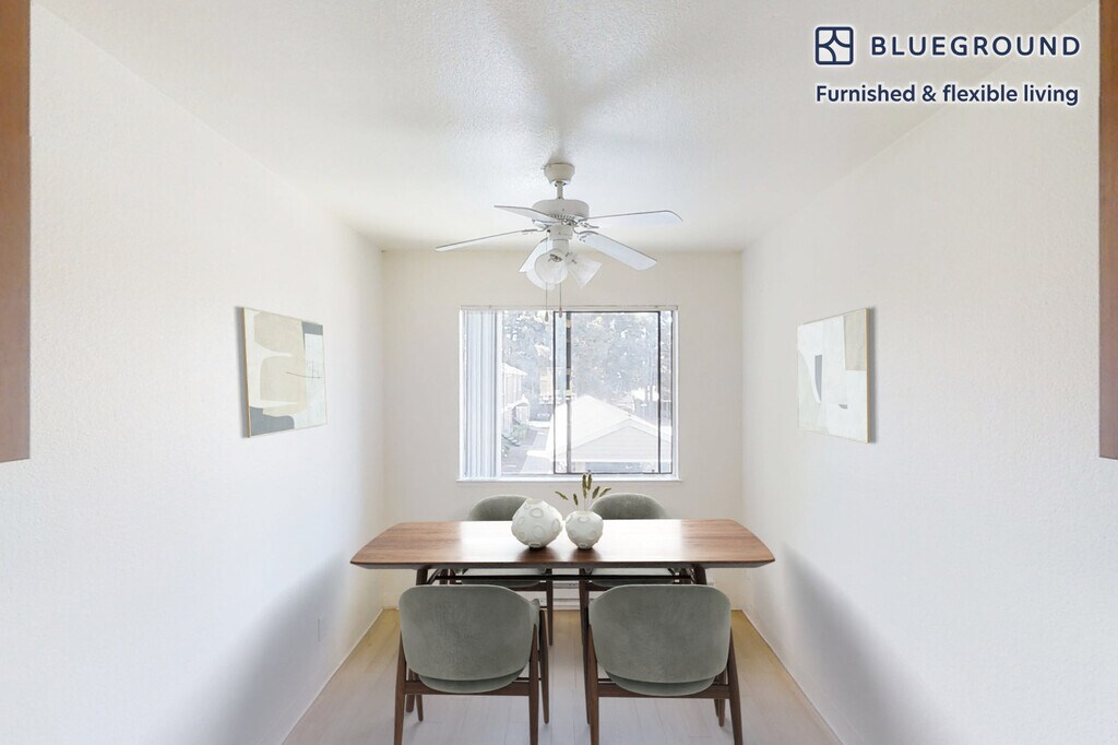 Staged photos of matching layout and similar décor Imagery shows same floorplan and building, and similar décor as we finish photographing this new unit. Be the first to rent! Feel at home wherever you choose to live with Blueground. You’ll love this sophisticated Brooktree furnished two bedroom apartment with its modern decor, fully equipped kitchen, and bright living room. Ideally located, you’re close to all the best that San Jose has to offer! (ID #SFO8402A) The advertised rate of $4,480/month is the lowest available price, based on a 12 month(s) and 29 day(s) stay with a move-in date of April 11, 2026. Rates vary depending on the duration of stay, season, and other parameters. For exact pricing and additional pricing components, please visit our website and enter your desired move-in and move-out dates. The rate is applicable when billed upfront; it can be higher if billed in multiple payments. Brokers are welcome to reach out. Were you looking for an unfurnished lease? Try Blueground instead and upgrade from unfurnished to furnished living: - Furnished at rates comparable to unfurnished - No setup or furniture costs - save thousands - Move-in ready - save time, just bring your suitcase Designed with you in mind As with any Blueground apartment, you’ll find a thoughtfully designed space complete with beautiful furniture and a fully equipped kitchen in this two bedroom property. And, thanks to our superior quality mattresses, fully stocked linens, and towels, you can relax knowing you’ll always feel comfortably at home. When you’re ready for some fun, you can take in the San Jose vibes or bring the entertainment to you with the premium wireless speaker or smart TV. This apartment also offers in-apartment laundry. Amenities Building amenities unique to this two bedroom apartment include an on-site: - Dryer - Washing machine - Parking - Pets allowed Arrival and ongoing support The entire apartment is yours to enjoy! Throughout your stay, you’ll have access to our Client Experience team through the Blueground App. You can schedule additional cleanings, submit maintenance requests, and view our neighborhood recommendations with just a few taps. We’ll share all details upon confirmation of your stay. Other things to note Photos show same floorplan and building, and similar decor as we finish photographing this new apartment. This Blueground apartment has flexible lease options, allowing you to book it for one month, a year, or more. Pets are welcome, though weight limits and breed restrictions apply and may incur fees. Parking is offered based on availability and is subject to a fee. Please keep in mind that this is a walk up building. We take great pride in ensuring every photo displayed is shot in our own units with our actual furnishings. That said, we regularly refresh our decor and furniture arrangement, which may differ from what’s pictured. [SI]