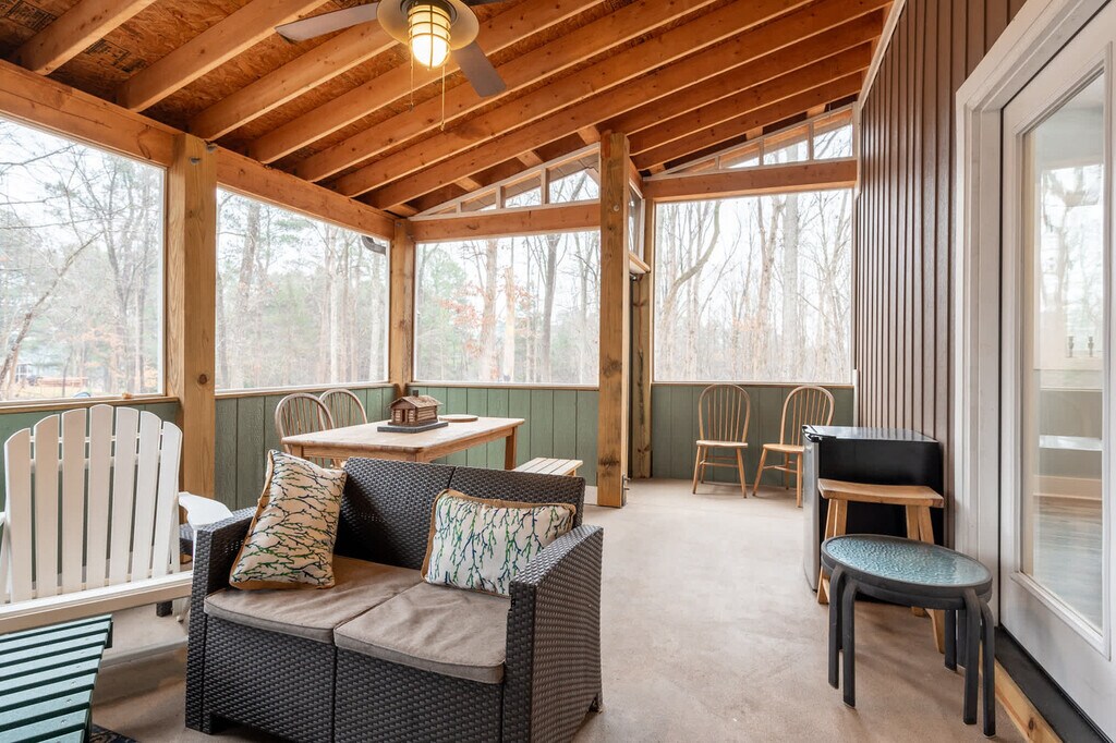 Escape to this 4-bedroom retreat with modern comfort and rustic charm. Located just 10 minutes from Elon University, 20 minutes from Greensboro, and 40 minutes from Durham, this home offers a serene getaway with modern amenities. The master suite is on the main floor, while upstairs features a second king bed, an office with a twin loft bed, and a queen sleeper sofa in an additional office space. Perfect for families, groups, or remote work, this home provides high-speed Wi-Fi and nearby attractions for all to enjoy. Stay active on the Peloton, unwind in the spacious outdoor area with a TV, or relax under the stars. This home offers modern amenities to ensure comfort and convenience. Up to 2 dogs are allowed. Cats are not allowed. Situated just 10 minutes from Elon University, 20 minutes from Greensboro, and 40 minutes from Durham, this home is ideally located for exploring nearby attractions. Enjoy the convenience of being close to educational institutions and vibrant city life. Parties and events are not allowed. Smoking is prohibited. 24/7 audio and video recording devices are placed in outdoor areas only. No recording devices are located inside or in any private space. This property is professionally managed to ensure a seamless guest experience from start to finish. Guests will have access to 24/7 guest messaging support for questions, recommendations, or troubleshooting and a dedicated emergency line for urgent issues that may arise during your stay. While the team won’t be on-site, they are always just a message away and happy to assist throughout your visit. Includes an office with a twin loft bed and a queen sleeper sofa in an additional office space, making it ideal for remote work. High-speed Wi-Fi is available to support your work-from-home needs. [SI]