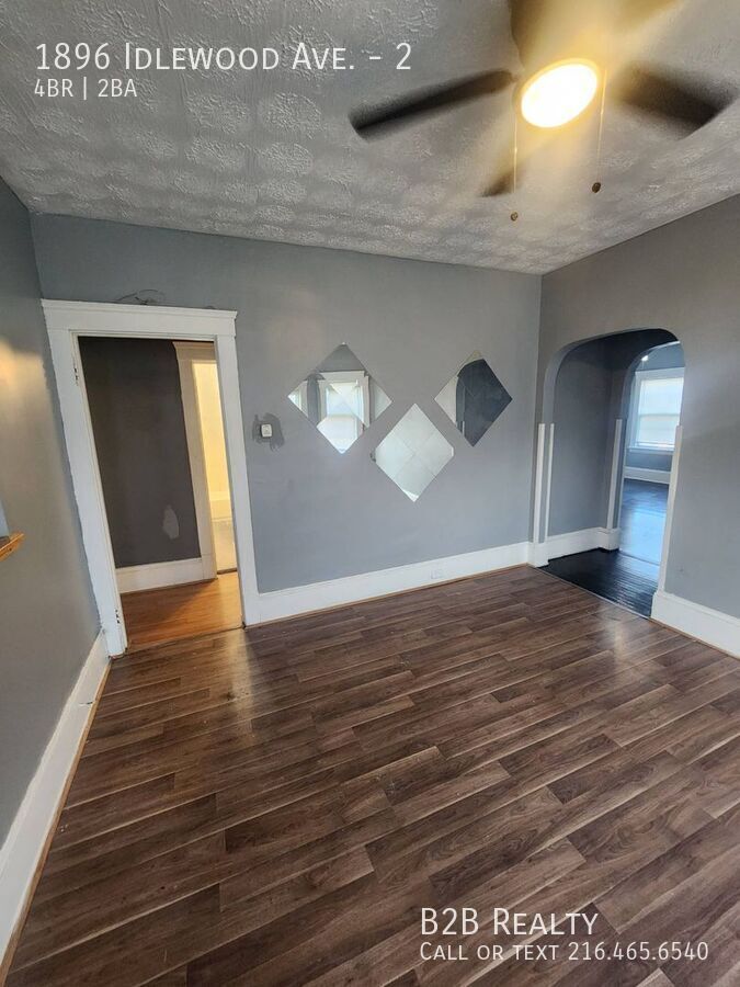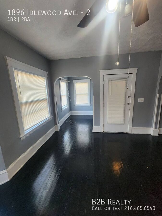 Welcome to your new sanctuary! Nestled in a vibrant neighborhood, this 4-bedroom, 2-bathroom apartment at 1896 Idlewood Ave., Unit 2, East Cleveland, OH 44112 offers generous space, modern features, and ultimate comfort. Perfect for families or roommates, this home is designed to provide peace and convenience while keeping you close to everything the city has to offer. ? Limited-Time Offer: Get Half Off Your First Month + Bonus 13-Month Lease! Move in today and enjoy both comfort and savings. Interior Features: • Spacious Living Area: The open-plan living area is designed for relaxation, featuring flooring and neutral tones that create a warm and inviting atmosphere. • Modern Kitchen: The kitchen is equipped with essential cabinetry and ample workspace, ensuring effortless meal preparation. Enjoy the convenience of modern fixtures along with plentiful storage space. • Comfortable Bedroom: The bedroom offers a peaceful oasis, perfect for unwinding after a busy day. Its tranquil setting ensures a good night's sleep. • Updated Bathroom: The bathroom is clean and functional, with modern fixtures that cater to your daily needs. Additional Information: • Screening: We charge a $25 fee per person over the age of 18 for background checks. Our comprehensive screening process includes credit, background, and eviction checks as well as verification of income, job history, and landlord references. We strive to approve tenants who may not initially think they qualify. • Neighborhood Insight: To get a true sense of the area, we recommend visiting the property at different times of the day. This will give you a realistic feel for the neighborhood’s ambiance and what to expect. • Maintenance: B2B Realty ensures that all properties are safe and well-maintained. While tenants are not permitted to make changes or repairs to the property, our dedicated maintenance team is always available to address any issues. Security Deposit Waived via Obligo: A flexible, affordable alternative to traditional deposits, offering financial freedom and peace of mind. Pet Policy: Pets are allowed. Availability: • Self-Pay & Section 8 tenants are welcome to apply for this property. B2B Fees: Monthly Rent - $1,150 (Recurring) Refundable Security Deposit - $1,150 (Non-recurring) Monthly Resident Benefit Package - $49.50 (Recurring) Pet Fee: $30 (If applicable - Recurring) Apply Now!!!!