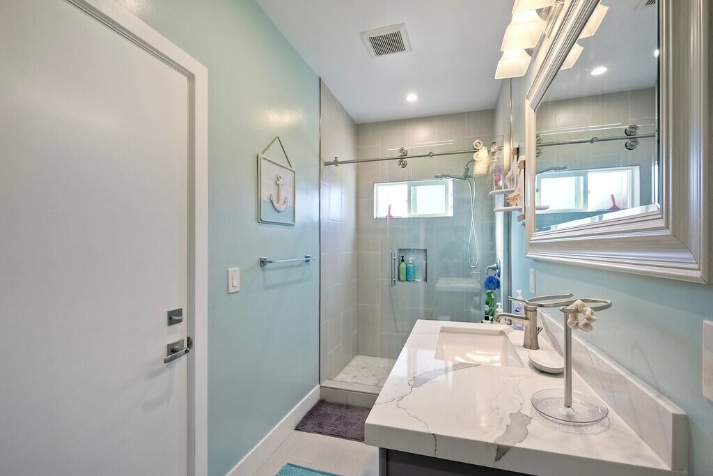 Upgraded 4 bedroom, 3 bathroom home in Oceanside. Bright, open great room. Beautiful backyard has turf, a putting green, plenty of areas for seating, and an outdoor shower. Outdoor kitchen island has grill and refrigerator. Front yard has space for RV or trailer parking complete with 30 amp breaker and sewer hookup. Kitchen has all stainless appliances, large island, tons of storage. Microwave, dishwasher and refrigerator included. Spacious bedrooms. Primary bedroom has a balcony. Primary bathroom has newer, solid white oak vanity. All bathrooms have custom showers, cabinets, vanities, and sinks. Home has solar! 2 Car attached garage has washer and dryer included. One small dog may be allowed upon approval. $40 Screening fee per Adult (18 yrs and older) For more information contact: Spangler Realty 3088 Pio Pico Dr., Ste.101 Carlsbad, Ca. 92008 DRE License#: 01222003 The material in this advertisement and on our website has been prepared by Spangler Realty, Inc. The material is for informational purposes only and does not constitute real estate advice. While we do our best to keep this information regularly updated, it is not guaranteed to be correct, complete, or up to date. Equal Housing Opportunity.