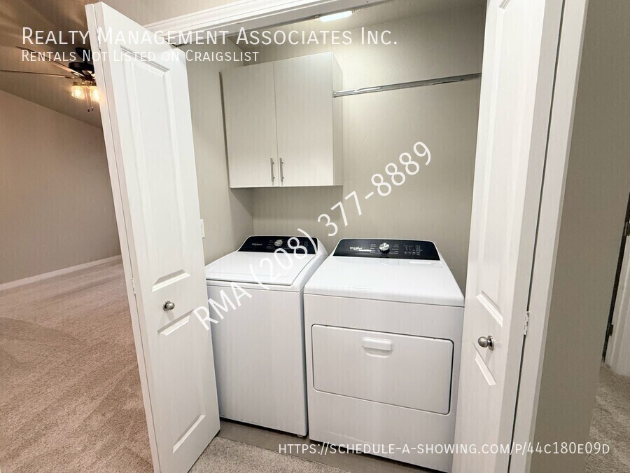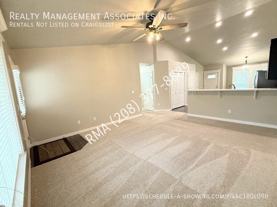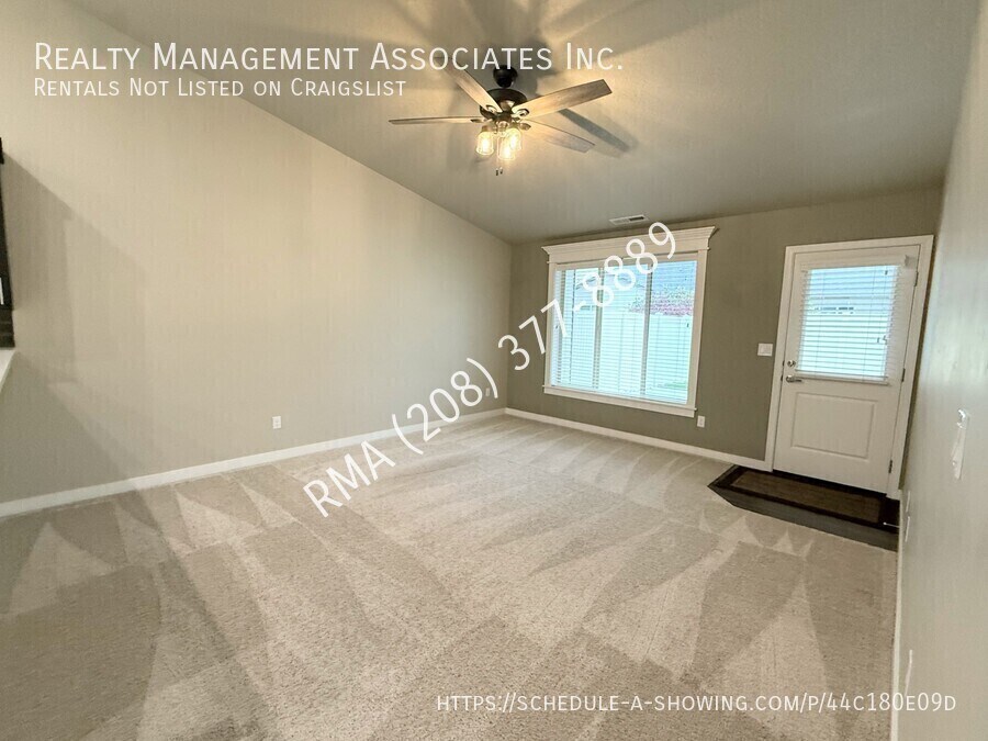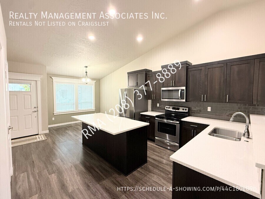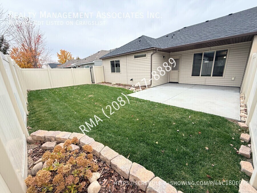 Beautifully maintained single-level 3-bedroom, 2-bath townhouse centrally located in Meridian. This modern home features a spacious kitchen with a large center island, quartz countertops, stainless-steel appliances, pantry, and abundant cabinet, drawer, and counter space, plus breakfast bar seating and a pantry, with luxury vinyl plank flooring. The open concept living room offers a vaulted ceiling, creating a warm and inviting space. The primary suite is generously sized with a private on-suite bathroom featuring dual sinks, quartz counters, a large walk-in closet, and a shower with seating. Two additional bedrooms offer ample space and great closets, while the guest bath includes a quartz-topped vanity and a shower/tub combo. The property comes with a washer and dryer for tenant use. Enjoy low maintenance living with the HOA taking care of all yard work, leaving you free to relax on the covered patio and extended concrete area. Additional features include a 2-car garage and access to community playgrounds and park areas. It is conveniently located just minutes from The Village, I-84, Albertsons Marketplace, Fred Meyer, shopping, dining, and top-rated schools like River Valley Elementary and Lewis and Clark Middle. This home combines comfort, convenience, and style in one of Meridian’s most desirable locations, don’t miss your chance to call this place home! 12 Month Lease and Property Liability Insurance Required. Tenant is responsible for all utilities. One small dog is negotiable, must be 20lbs or less. $750.00 pet deposit for one pet ($200.00 non-refundable). $50.00 a month pet rent in addition to the monthly rent. Please see our pet policy here: This property is located with-in the Solterra Subdivision and subject to the residential rules and regulations of the HOA. For questions about residential rules or questions about the HOA CC&Rs please reach out to the HOA Management: Alliance Management Partners