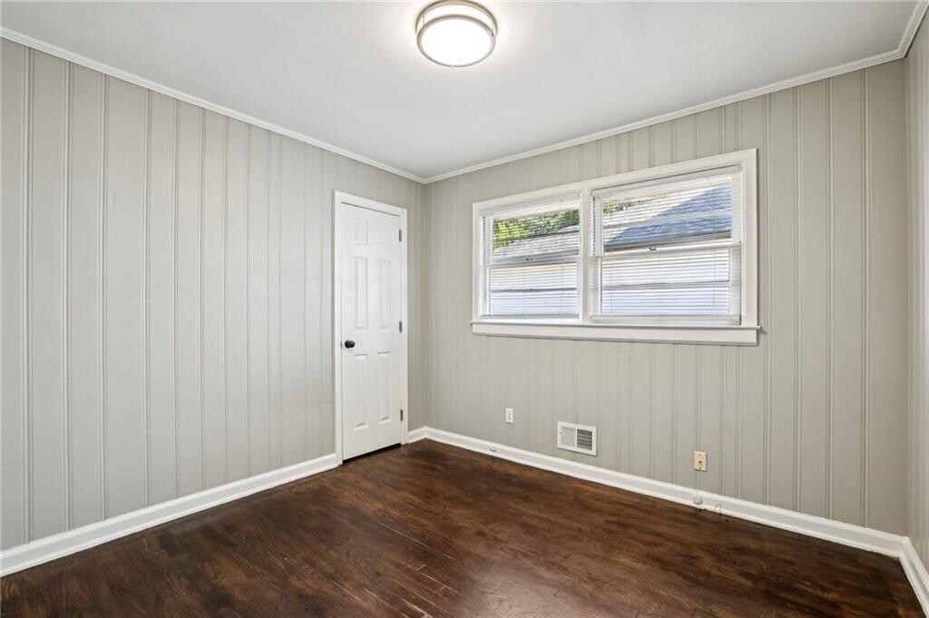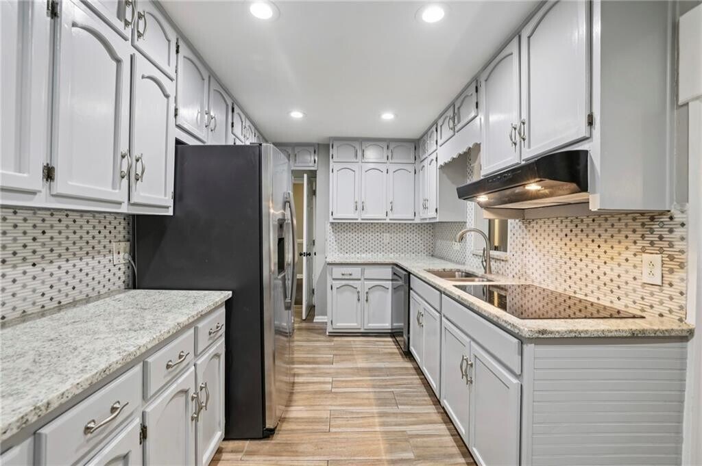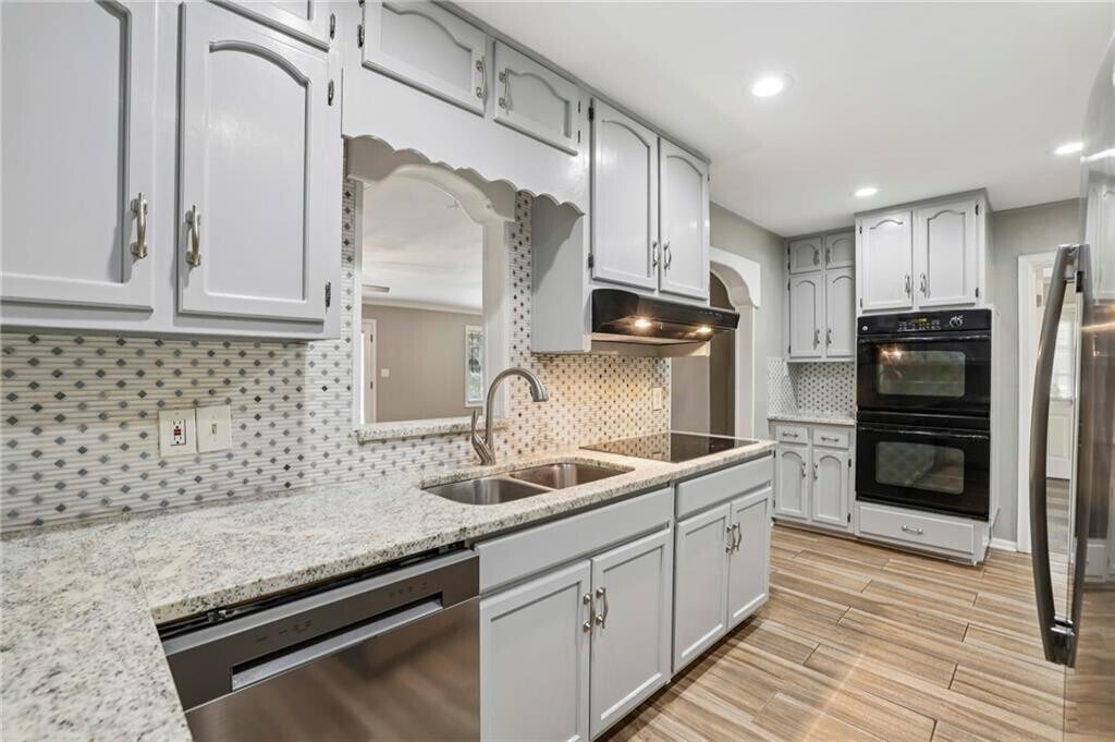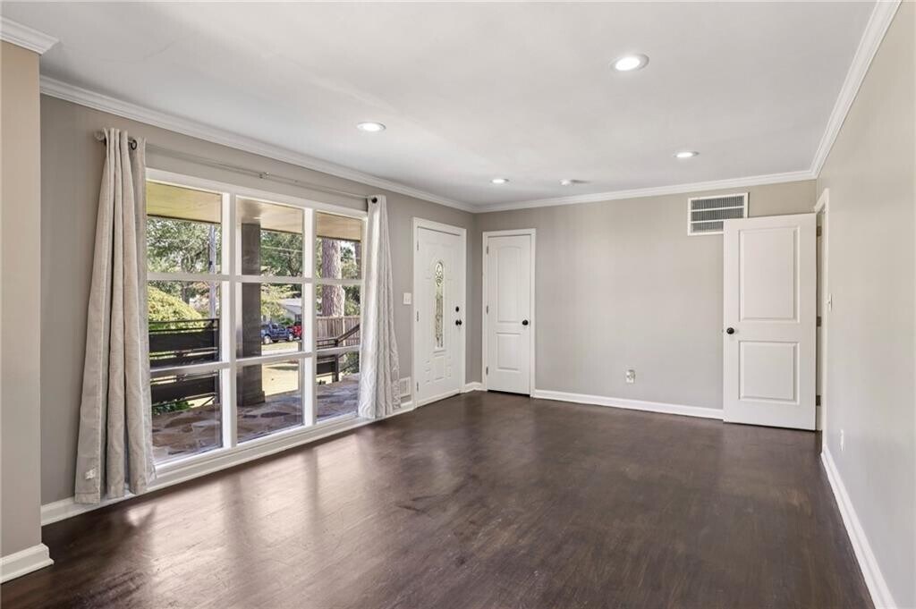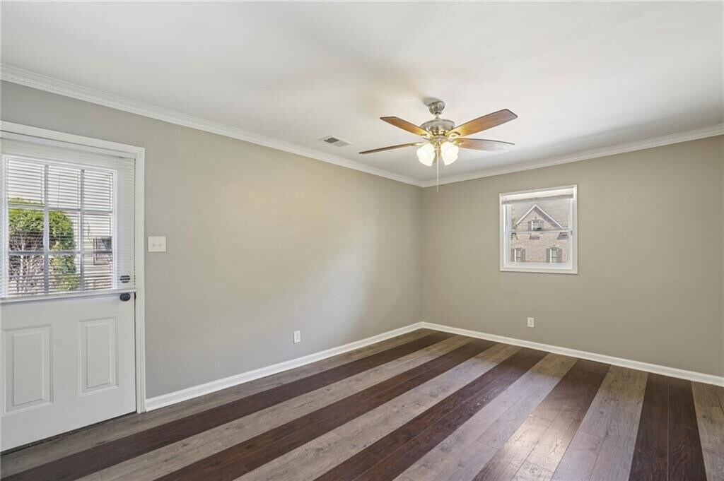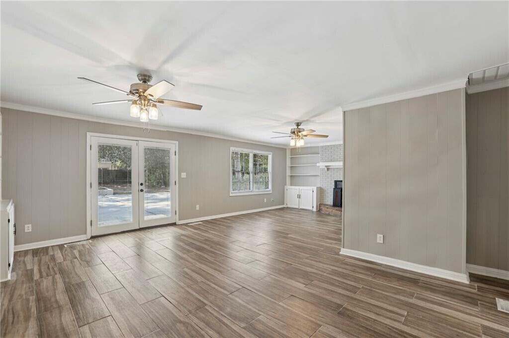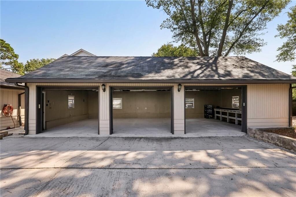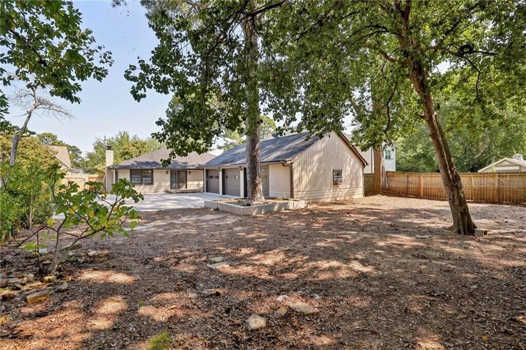 Renovated Ranch home in a Fantastic Brookhaven location! Carpet free with hardwood floors in large living room and dining room with mid-century picture window overlooking front porch front. Kitchen includes double oven with separate flat cooktop,stone counters and tiled backsplash. Spacious Family Room with built-in bookshelves and fireplace opens to paved driveway/courtyard with a detached oversized garage with over 1000 square feet of space at the rear,3 car bays,each 24 feet deep with 10 foot wide garage doors and 220V power. Oversized primary suite plus 2 other secondary bedrooms and separate en suite 4th bedroom with private entry. Hardwoods and LVP in bedrooms. Beautiful renovated bathrooms with upgraded vanities and tiled showers. Gated,fenced and level yard with additional parking at front of house. Close to Town Brookhaven and I-85. Only 5 minutes from Chamblee MARTA station.