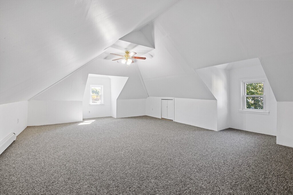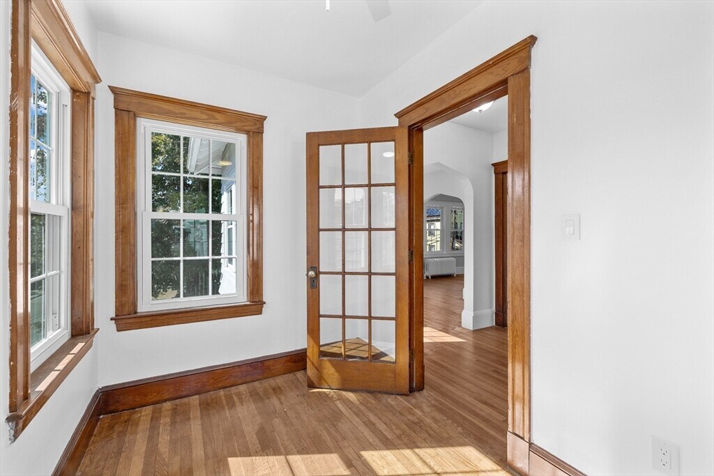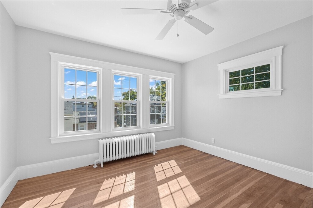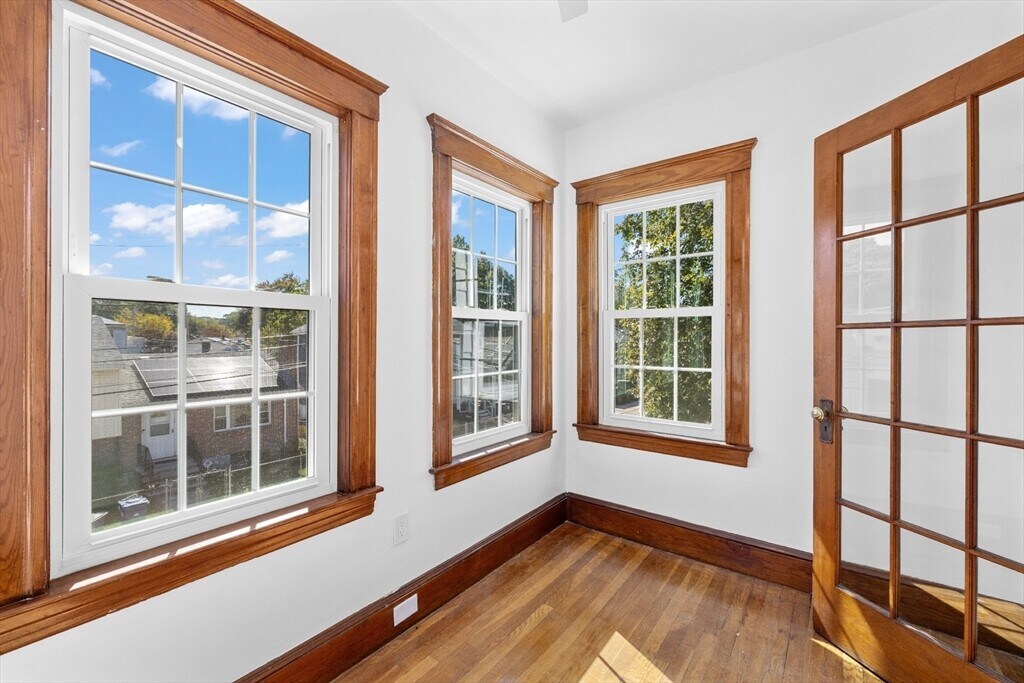 Available now! Sun drenched,top floor unit in a multi-family home. Located on a corner lot in a quiet residential neighborhood,this apartment will check all your boxes. Main floor features a large eat-in kitchen complete with gas cooking,fantastic cabinet storage,breakfast bar,and a walk-in pantry. The open concept living and dining room are south-west facing,providing gorgeous light all day long. Two large bedrooms plus a dedicated home office complete this level. On the upper level,enjoy a finished attic that is perfect as a primary bedroom,family room,additional home office or play area or simply storage. Ceramic tile bathroom. Freshly painted and immaculately clean,with hardwood floors and high ceilings. Enjoy cool breezes on your private enclosed rear porch or shared patio and yard. Shared laundry in the basement. Apartment comes with 2 off-street parking spots - 1 garage parking spot as well as 1 dedicated driveway parking spot. MLS# 73441813