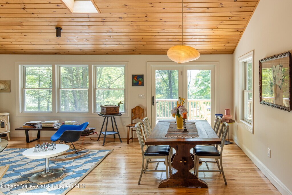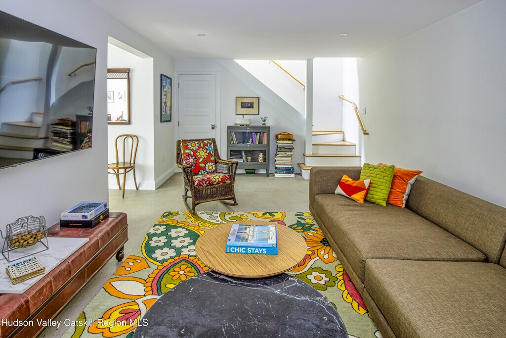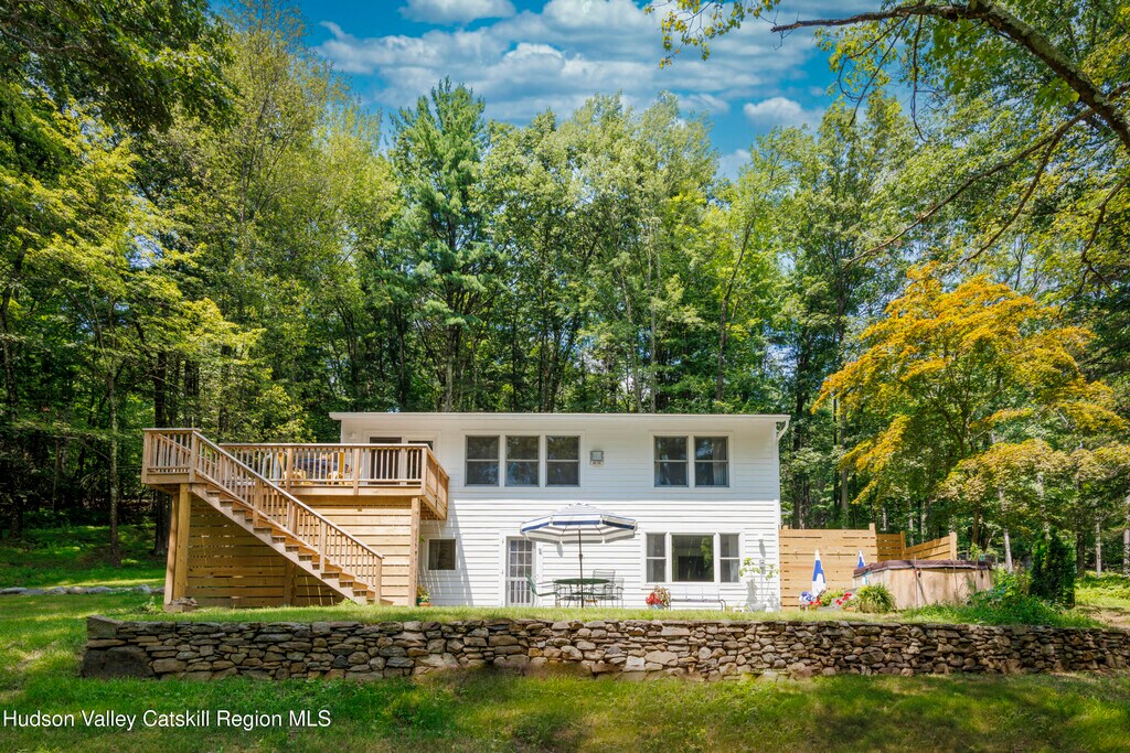 19 Bakertown Road is a brand new gut-renovated,impeccably furnished two bedroom country home that sits high on a hill off a quiet country road in idyllic Accord,NY. Enter through a bright foyer and into a grand great room with wood paneled sky-lit cathedral ceilings. This room has large living and dining areas with chic furniture and a Jotul cast iron gas stove. A beautifully designed chef's kitchen is fully equipped with a stainless steel french door refrigerator with ice-maker,vented five burner cooktop,dishwasher and thick butcher block counters. A sliding door off the dining area opens to a spacious deck with table and chairs to take in the lovely views of the pond and property. The corner Master bedroom has oversized windows and a king size bed. The secondary bedroom has a queen size bed. Both bedrooms boast brand new plush pillow top Simmons Beautyrest mattresses. Adjacent to the bedroom is a spacious,perfectly appointed windowed and sky-lit bathroom with wood paneling,spectacular blue tiles,heated floors,a freestanding deep soaking tub,Kingston Brass fixtures and marble apothecary sink. Head downstairs through a skylit staircase to the lower level with a 75'' flat screen Smart TV,10' down-filled couch,sitting/play area with built-in ballet/stretching bar,and full size laundry room with brand new Samsung machines. There is a full size bathroom with shower on this floor with Kohler fixtures and heated floors. From here step out to the massive blue stone terrace with cedar panel hot tub and enclosed private outdoor shower. The house is located on Bakertown Road,arguably one of the most beautiful country roads in the area,and is just two miles from Inness,Westwind Orchard/Cidery and Arrowood Brewery. It is also a short drive from New Paltz,Kingston,Woodstock,Stoneridge,High Falls and Rosendale; and just minutes away Hiking trails of Minnewaska State Park,the Mohonk Preserve and the Hudson Valley Rail Trail. Hunter,Belleayre,and Wyndham Ski resorts are all under an hour away. This 2+ acre property is located on a gorgeous,quiet,country road with only a handful of neighbors who also come up to enjoy nature and the quiet surroundings. FOR SHOWINGS CONTACT HENRY at